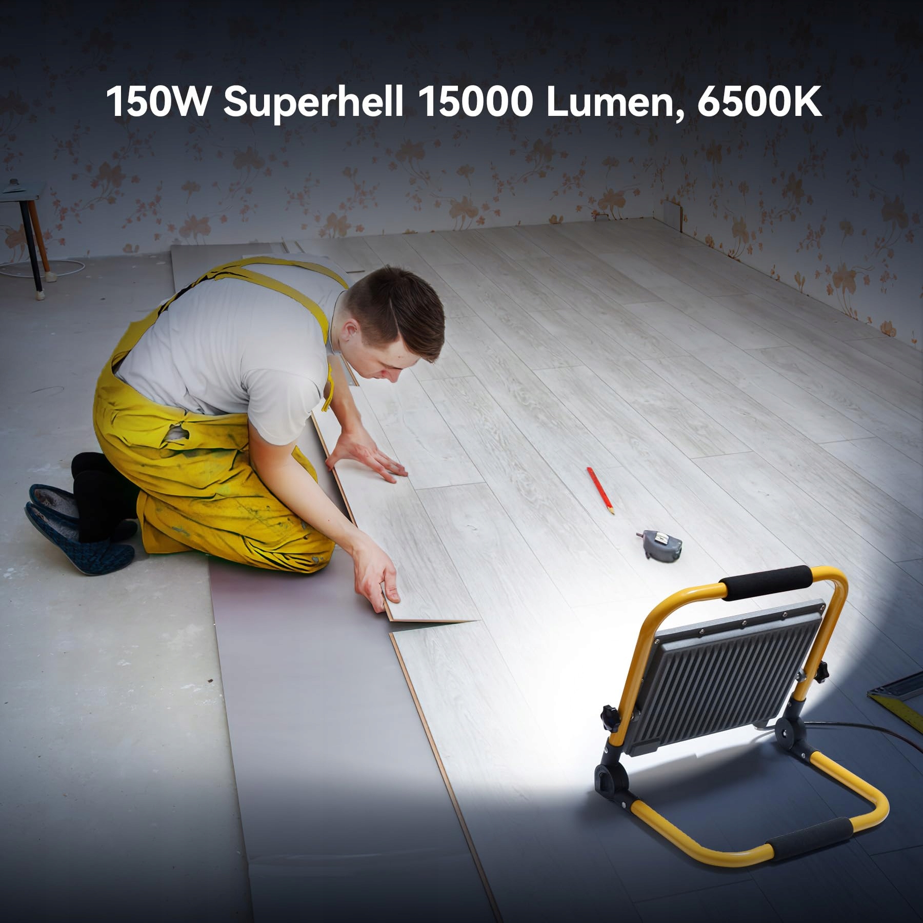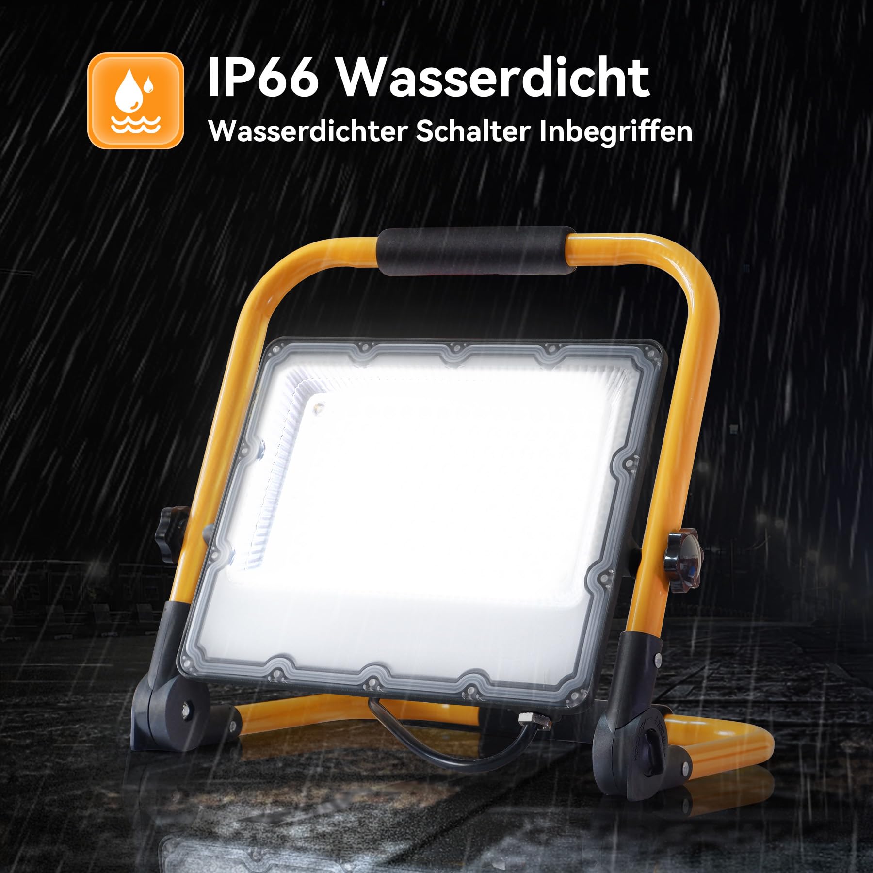OUSIDE 150W LED Reflektor budowlany z trójnogiem i 4M kablem, IP66 Wodoodporny reflektor roboczy ze wtyczką Schuko i przełącznikiem do remontu mieszkań, warsztatów, placów budowy, 6500K, 15000 lumenów