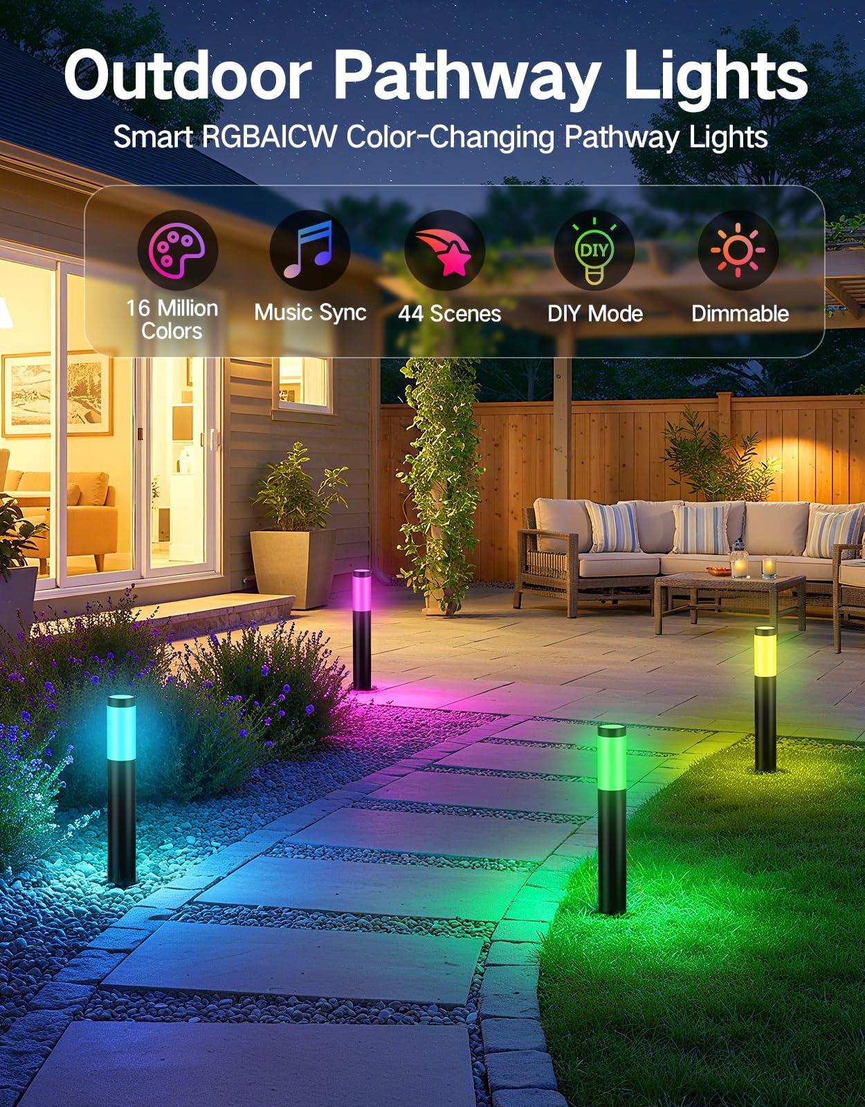Wielokolorowy wyświetlacz: Dzięki 16 milionom żywych kolorów i 44 dynamicznym trybom scen LED lampy ogrodowe dodają dodatkowego blasku Twojej dekoracji ogrodu. Lampy ścieżkowe OUTON wykorzystują RGB oraz ciepłe/zimne światło (2200-6500 K), a każdą lampę można sterować indywidualnie, co sprawia, że idealnie nadają się do Twojej ścieżki, podjazdu, tarasu czy trawnika.