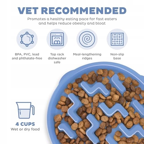 WSPIERA ZDROWE TRAWIENIE: Psy, które jedzą szybko, często mają problemy z wzdęciami, zwracaniem pokarmu i nadwagą. Nasze miski Fun Feeder Slo Bowl stanowią wyzwanie dla Twojego psa i zajmują go podczas jedzenia, co pomaga zmniejszyć przejadanie się.