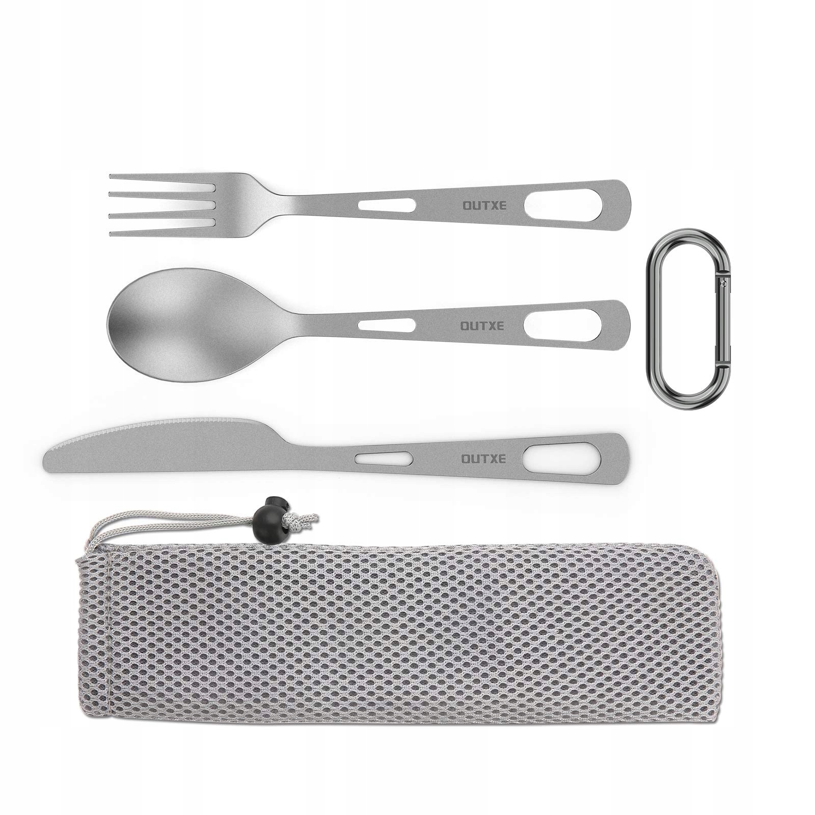 OUTXE Titanium Zestaw Przyborów Kempingowych 3 sztukiTitan łyżka widelec nóż zestaw i torba, lunchbox zestaw sztućców i sztućce podróżne