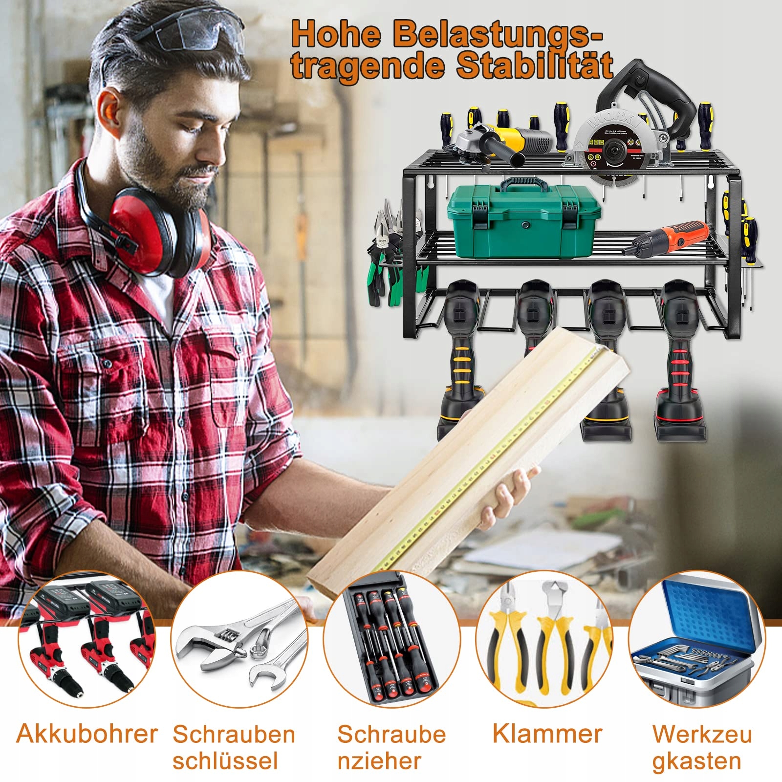 OUUTMEE Półka Na Narzędzia Elektryczne, Montaż Na Ścianie 40x20x20CM | Premium Supply