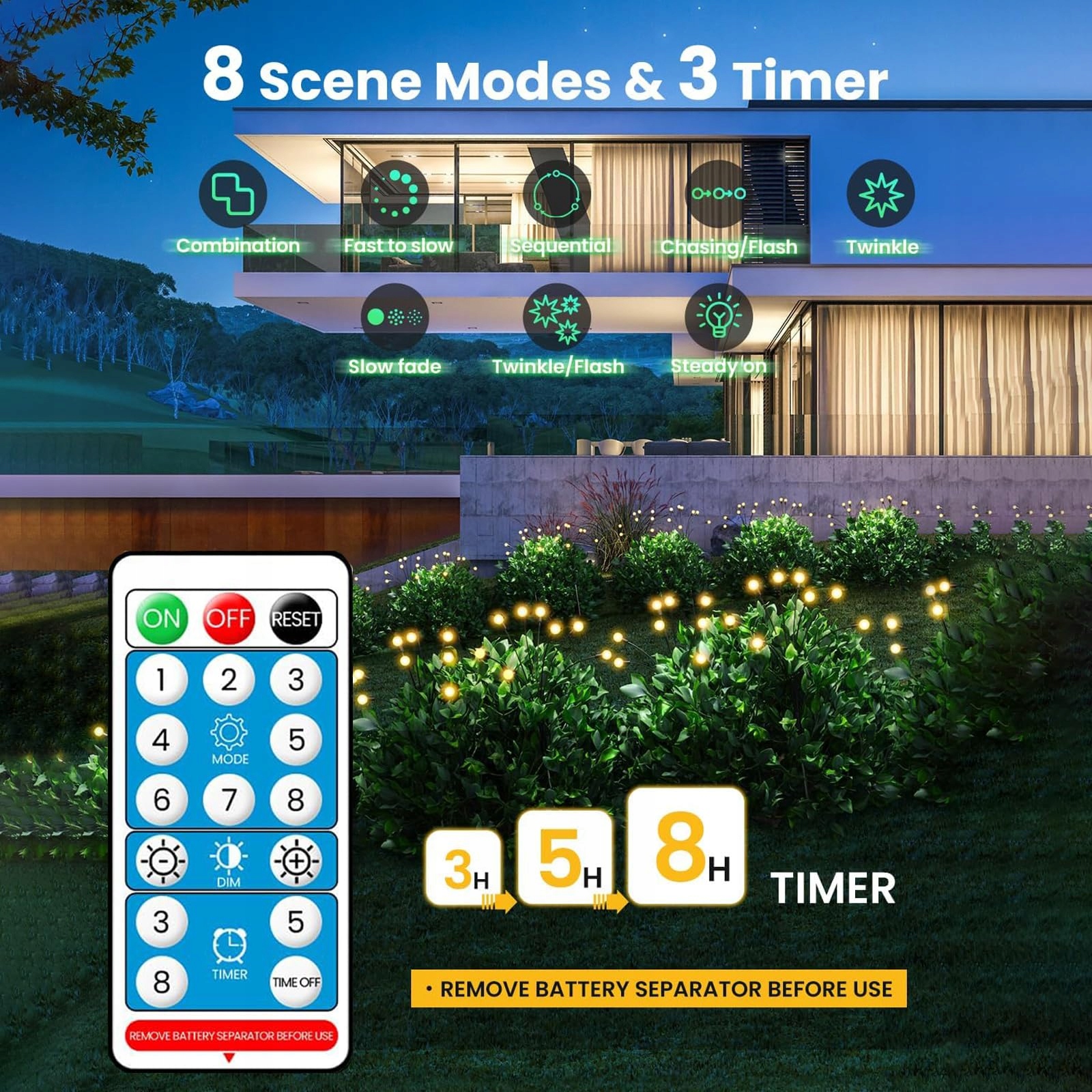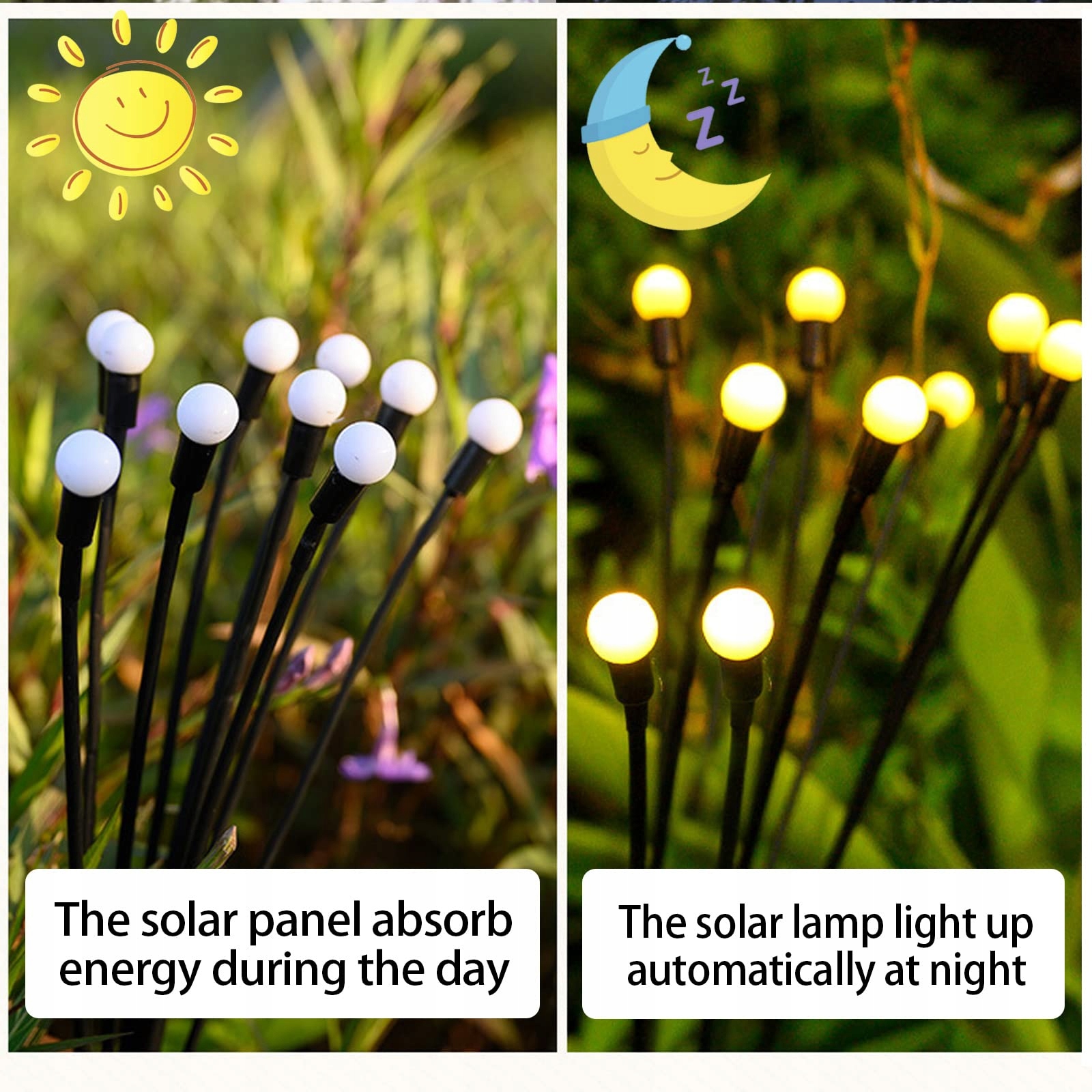 4 W 1 KOŁYSZĄCA SIĘ LAMPA ŚWIETLIKÓW: Solarne świetliki na zewnątrz są wyposażone w miękkie i elastyczne druty, które kołyszą się i tańczą na wietrze, wyglądając jak grupa świetlików latających na podwórku. Piękne światła wyglądają oszałamiająco nocą, idealne do Twojego ogrodu.