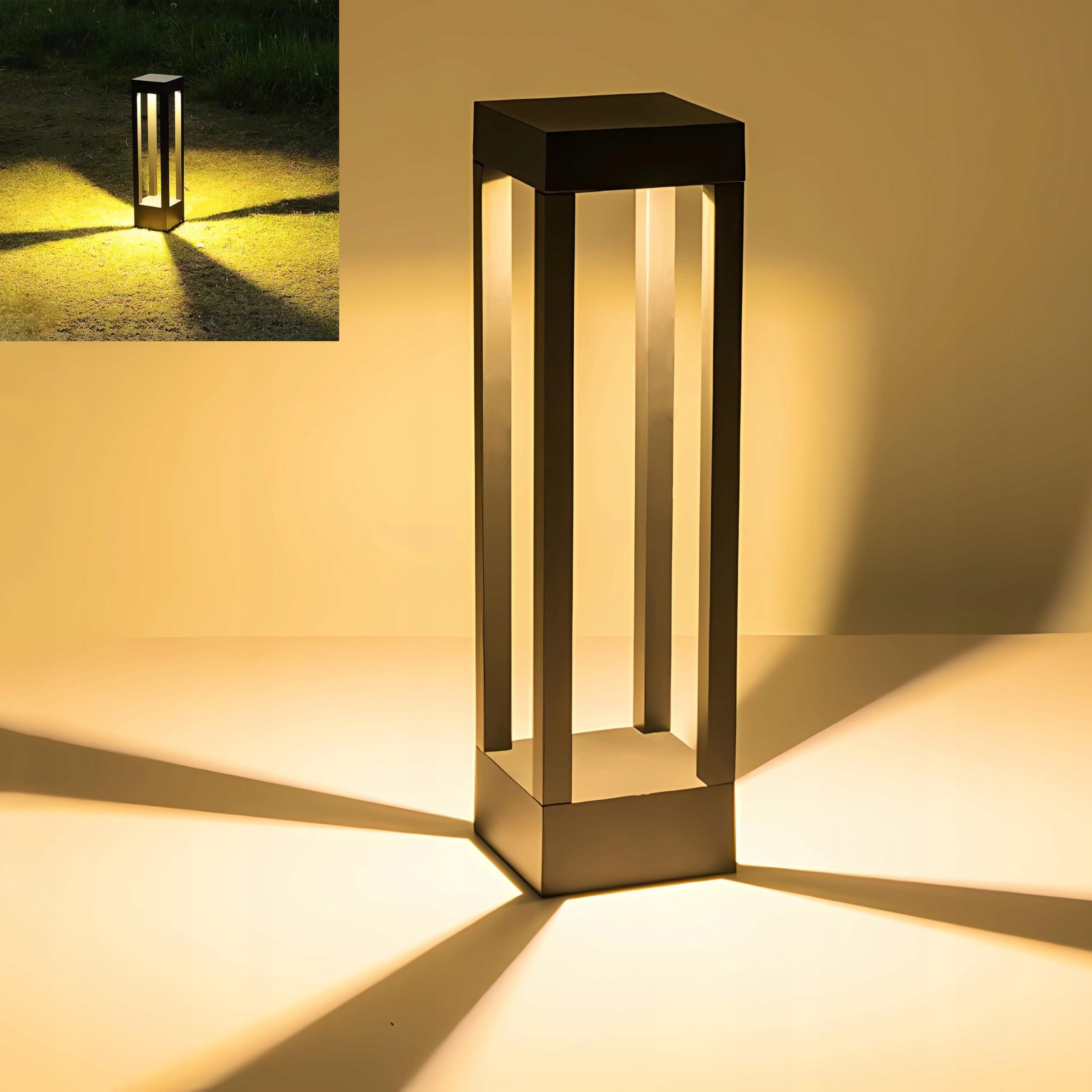Wodoodporna latarnia ścieżkowa IP54: Ta latarnia stojąca na zewnątrz jest wodoodporna zgodnie z normą IP54, aby wytrzymać wszelkie trudne warunki pogodowe. Niezależnie od tego, czy pada deszcz, śnieg, wieje wiatr czy jest mróz, nasze oświetlenie tarasowe na zewnątrz będzie nieustannie oświetlać Twój dom