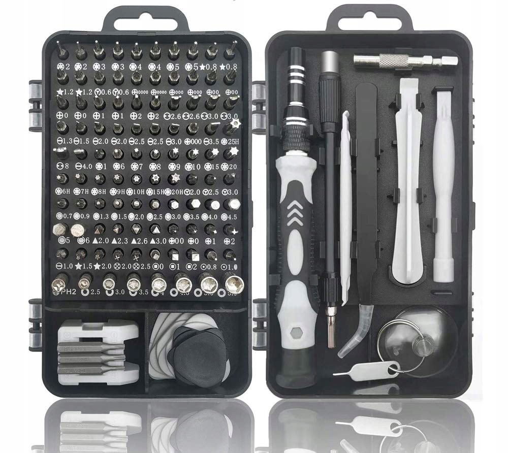 1) Zestaw wkrętaków wielomagnetycznych: 115 w 1 Zestaw wkrętaków precyzyjnych zawiera więcej narzędzi, przychodzi ze wszystkimi niezbędnymi narzędziami do różnych zadań. Idealny do naprawy laptopów, urządzeń mobilnych i innych elementów precyzyjnych, takich jak zegarki i okulary. Lekka waga i kompaktowa konstrukcja