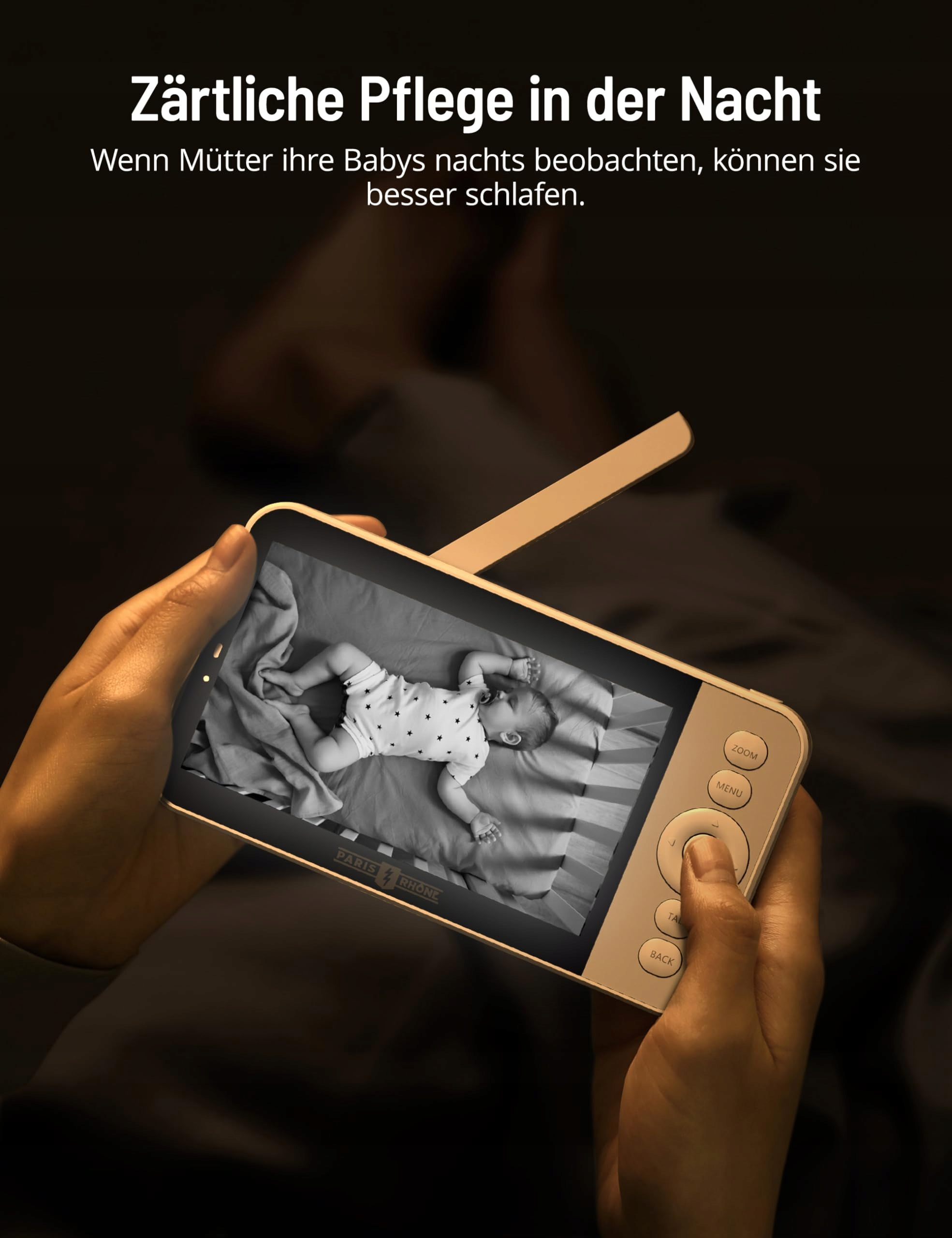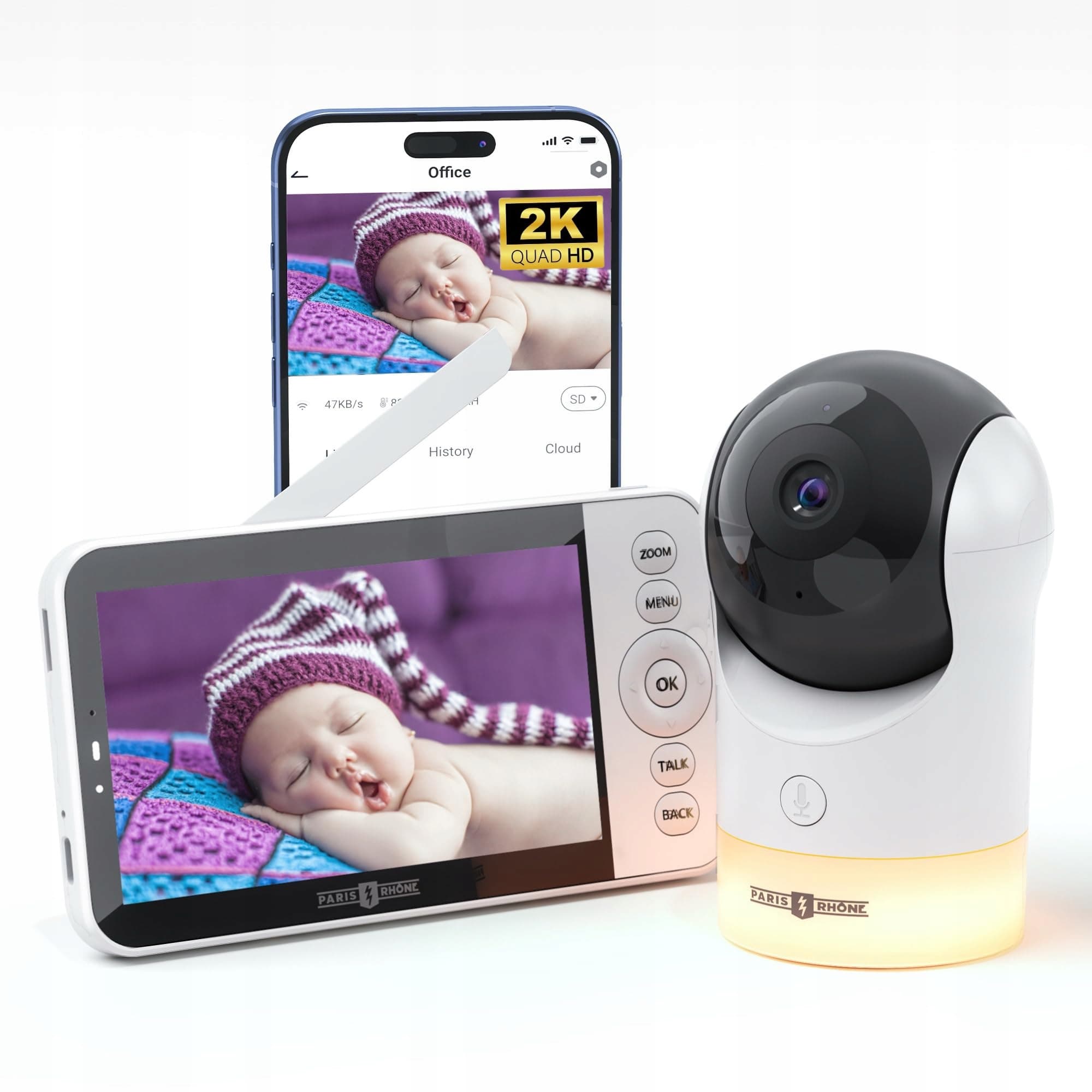 PARIS RHÔNE Babyfon Kamera 2K HD 5" WiFi Niania AI RGB Nocne Światło | Premium Supply
