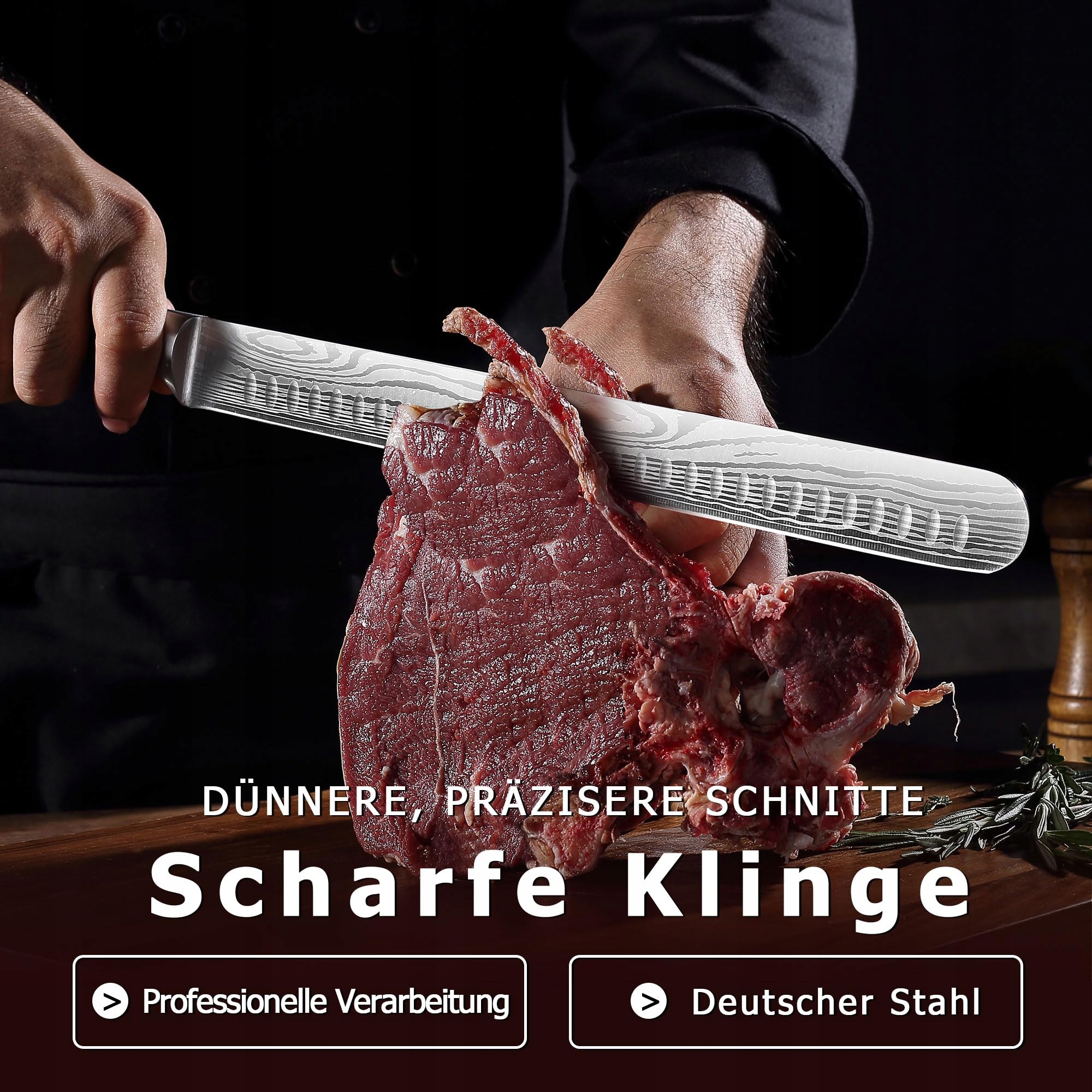 Premium nóż do krojenia: profesjonalny nóż kuchenny z ekstremalnie ostrym ostrzem z wysokiej jakości stali nierdzewnej z 16-18% chromu i 0,6-0,75% węgla. Ostrze jest zdecydowanie odporne na rdzę.