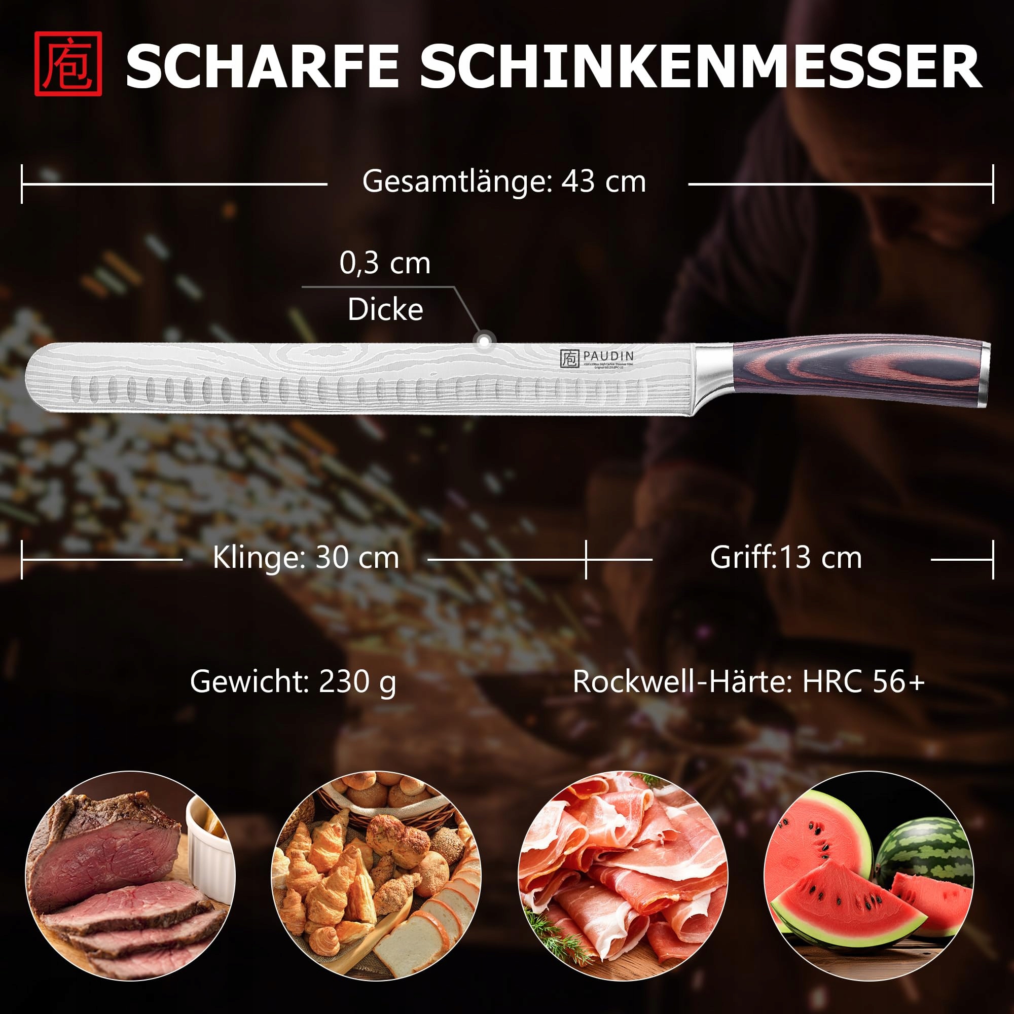 PAUDIN Nóż Do Szynki 30 cm Profesjonalny Nóż Kuchenny Ze Stali Nierdzewnej