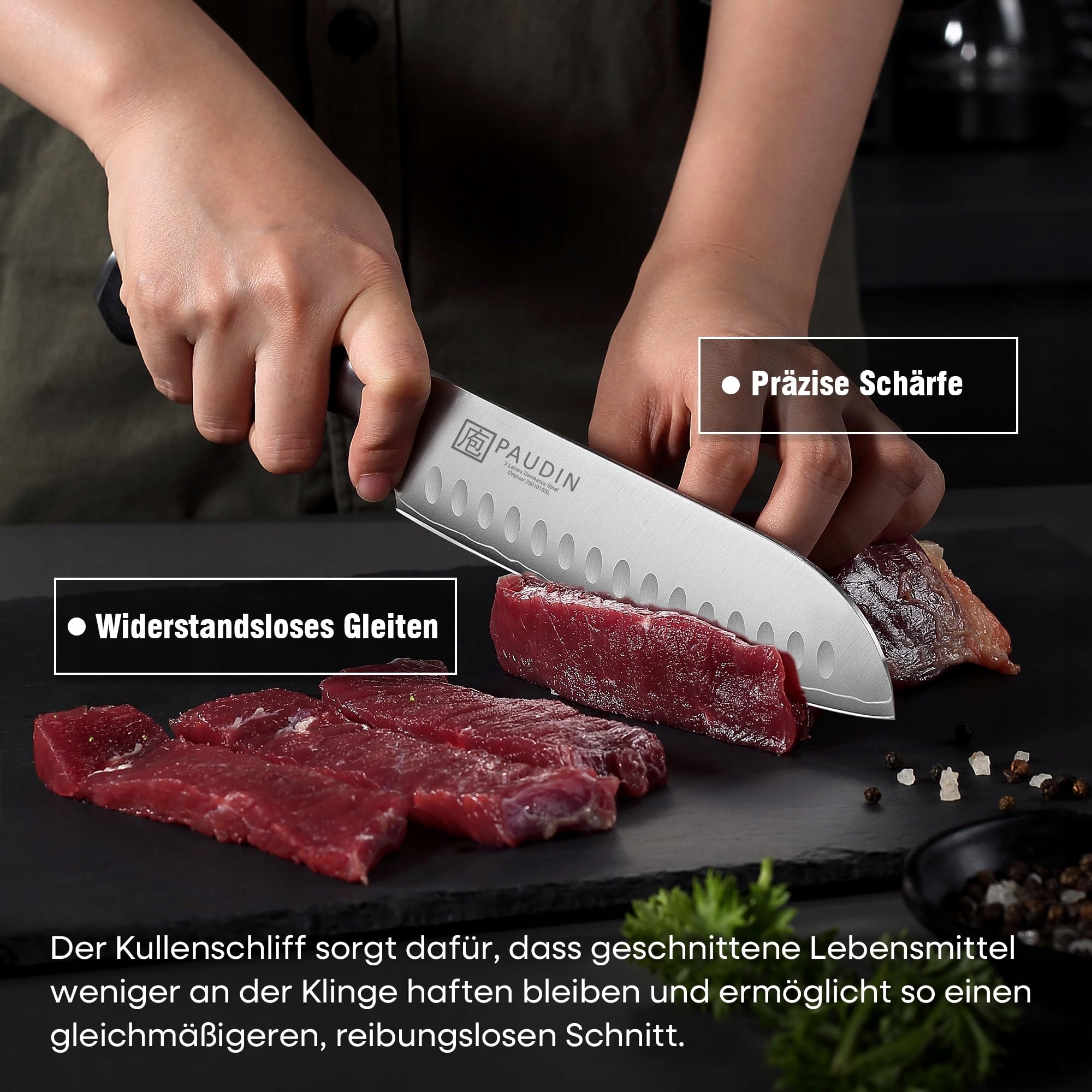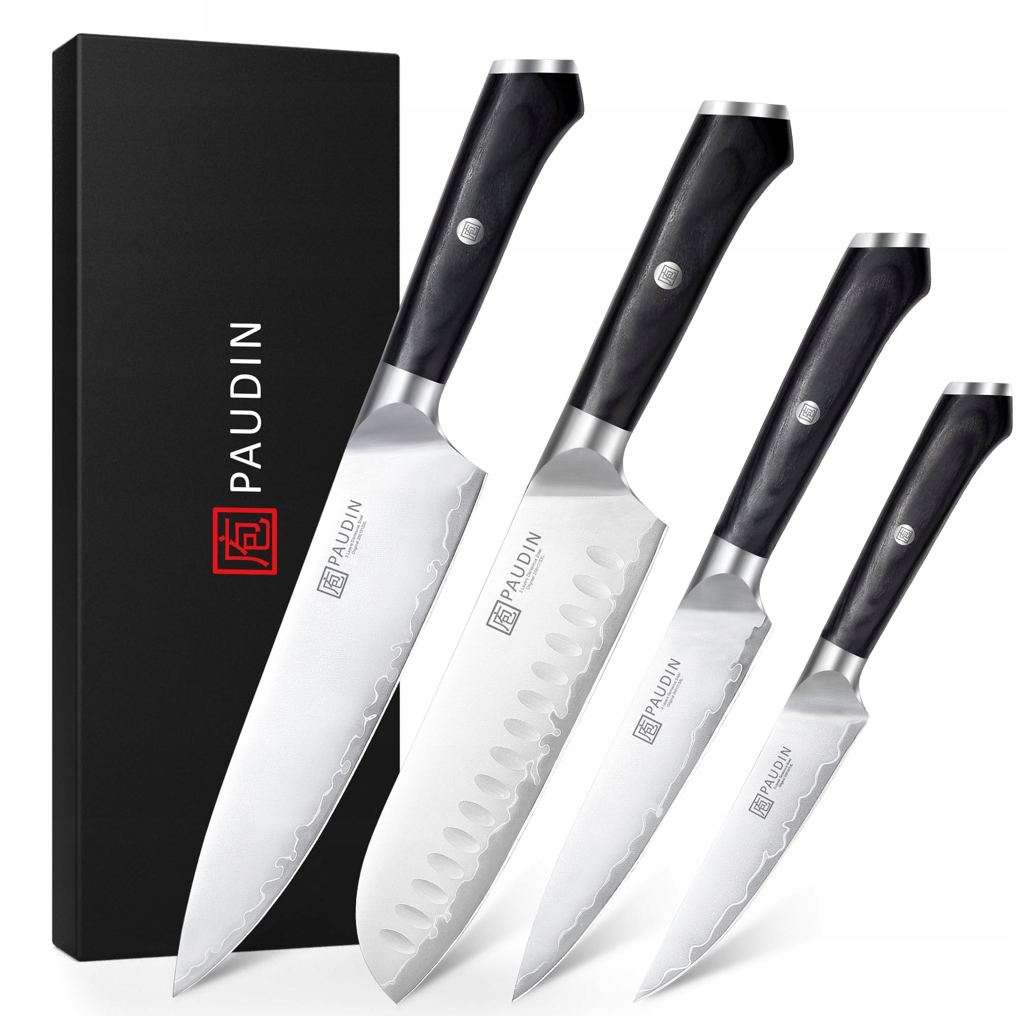 Zestaw noży PAUDIN 4-częściowy zestaw noży kuchennych noże szefa kuchni nóż santoku nóż uniwersalny nóż do warzyw profesjonalnie ostry z wysokiej jakości stali nierdzewnej z ergonomiczną drewnianą rączką