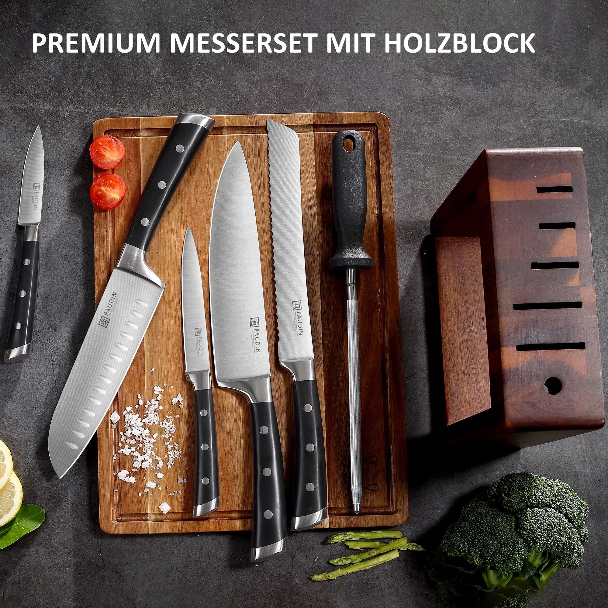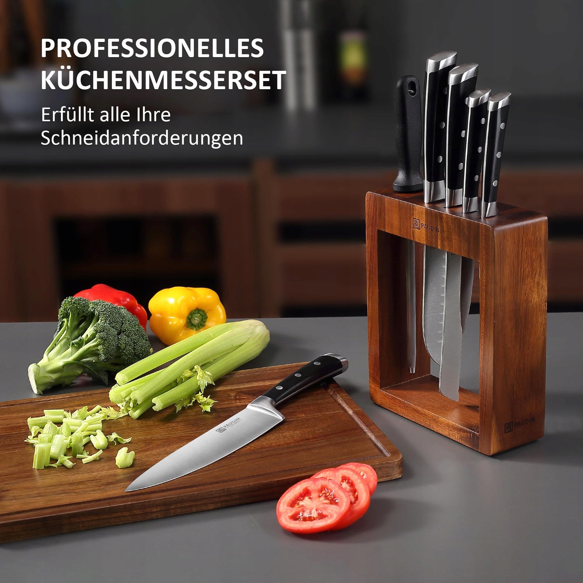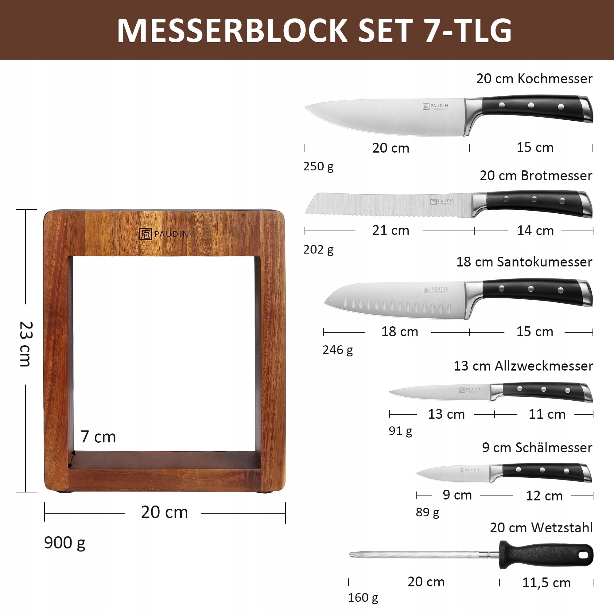 PAUDIN Zestaw Noży Kuchennych 7 Częściowy Blok Drewniany Stal Nierdzewna | Premium Supply