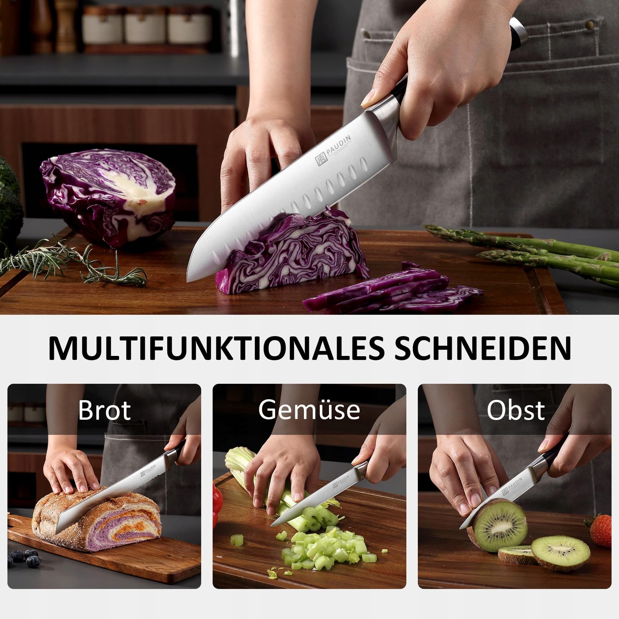 PAUDIN Zestaw Noży Kuchennych 7 Częściowy Blok Drewniany Stal Nierdzewna