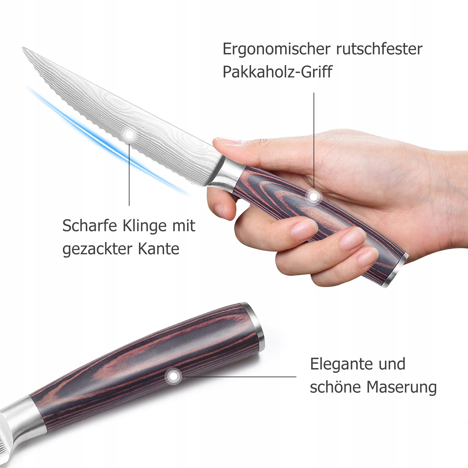 PAUDIN Zestaw Noży Stekowych 6 Sztuk Niemiecka Stal Ergonomiczny Uchwyt