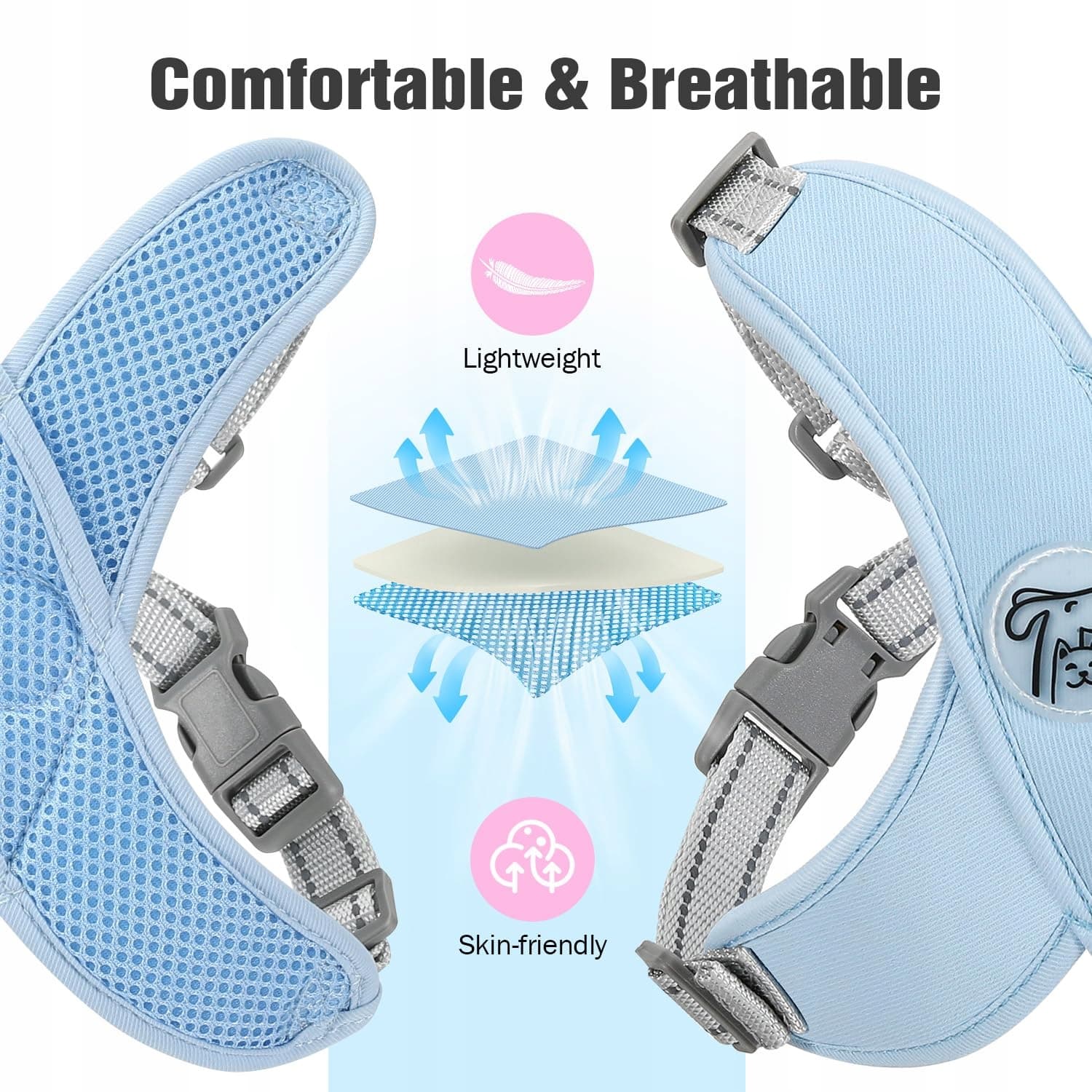 [Miękki i wygodny komfort noszenia]Kamizelka szelkowa dla psa jest wykonana z miękkiej i wysokiej jakości tkaniny poliestrowej, która jest lekka i nie rani skóry zwierzęcia. Ponadto oddychająca siatka i wypełnienie gąbką wewnątrz kamizelki zapewniają bardziej komfortowe noszenie dla futrzanych przyjaciół.