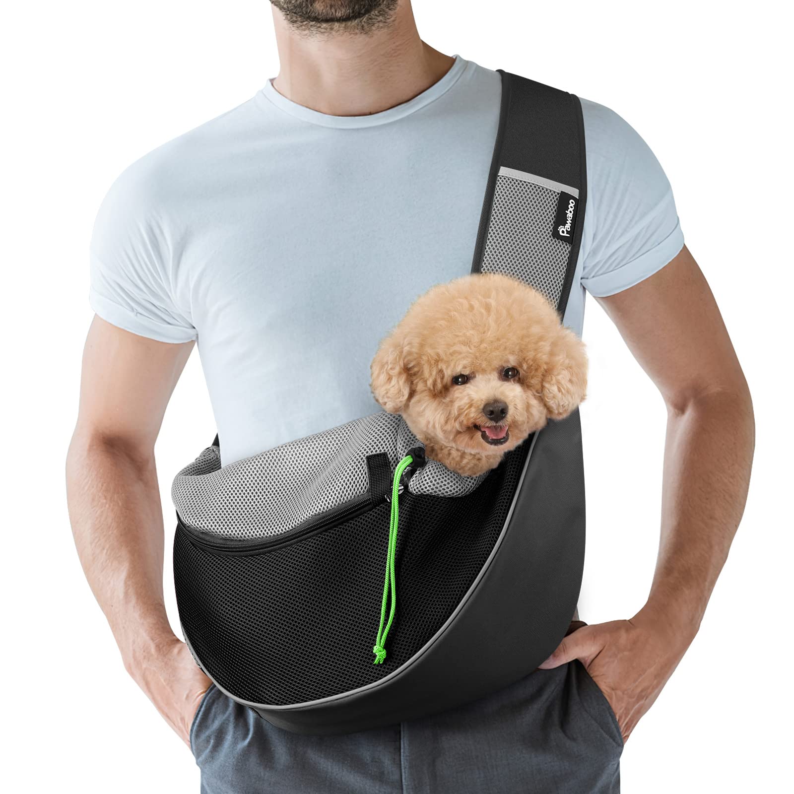 Pawaboo torba na psa, torba na psa, regulowana torba na psa, torba na ramię dla zwierząt, torby na psy na spacery, podróże na świeżym powietrzu - M, czarna