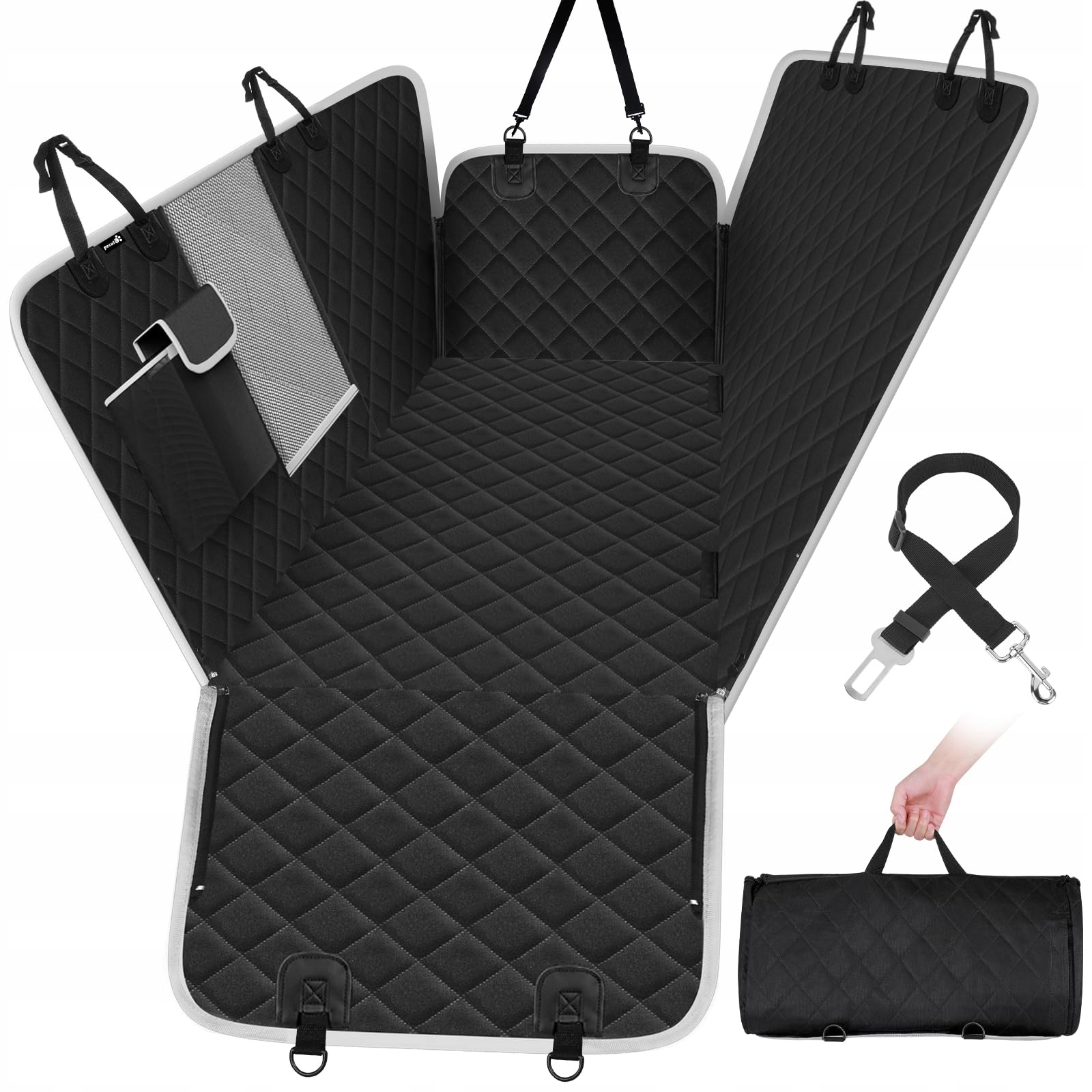 PECUTE Mata Dla Psa Do Samochodu 136x146 cm Wodoodporna Ochrona Siedzeń Z Bokami I Okienkiem