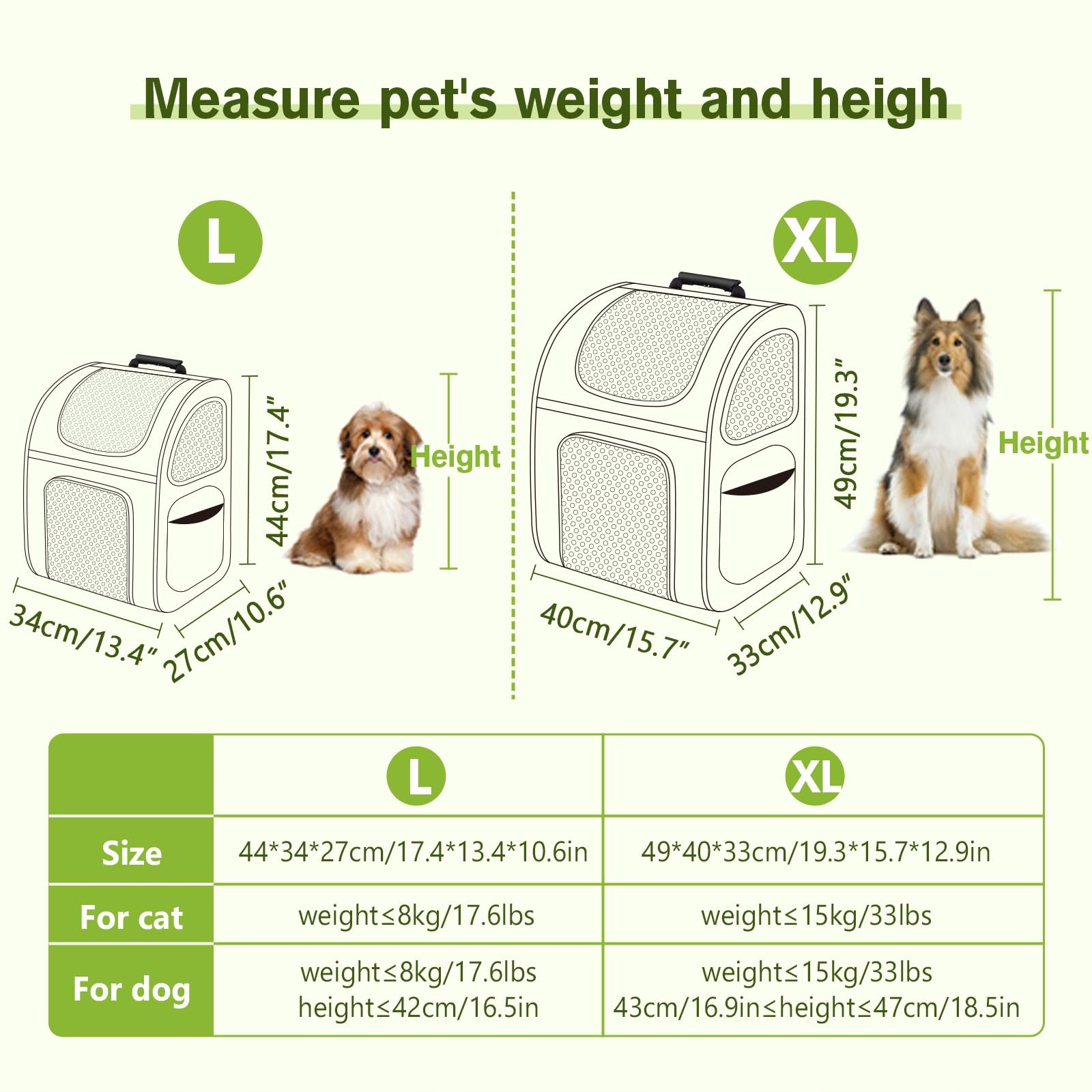 🐾[Hojny design] Rozmiar L40 * H40 * B33cm zapewnia wystarczająco dużo miejsca dla Twojego zwierzaka do stania i leżenia. Plecak można nosić na trzy różne sposoby: jako plecak na plecach, noszony w ręku lub przymocowany do wózka bagażowego.