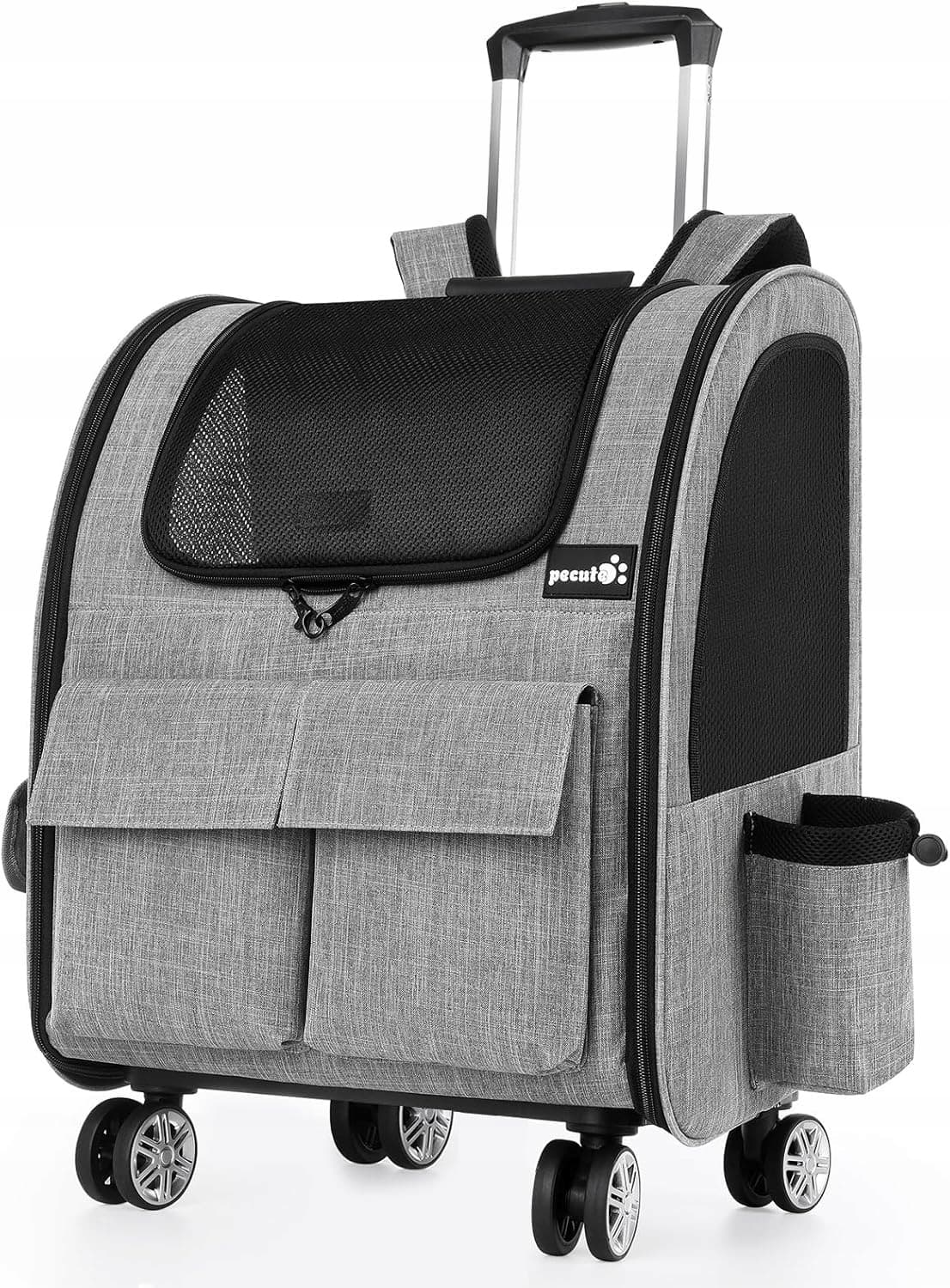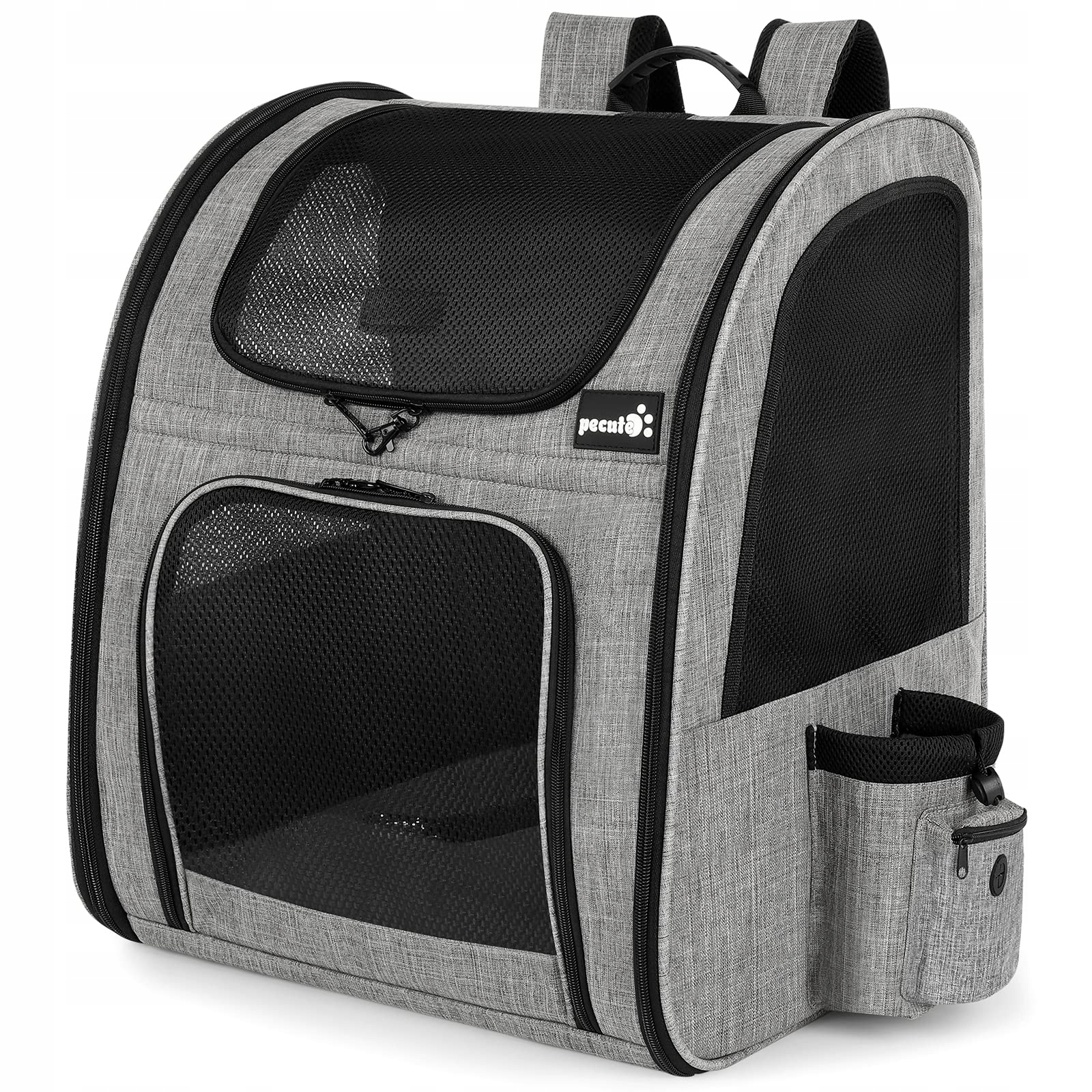 Pecute plecak dla zwierząt z oknem z siatki, przenośna i składana torba dla kota, oddychająca i lekka torba dla psa, wodoodporna tkanina Oxford z dużą ilością miejsca, wielofunkcyjna antypoślizgowa szara XL