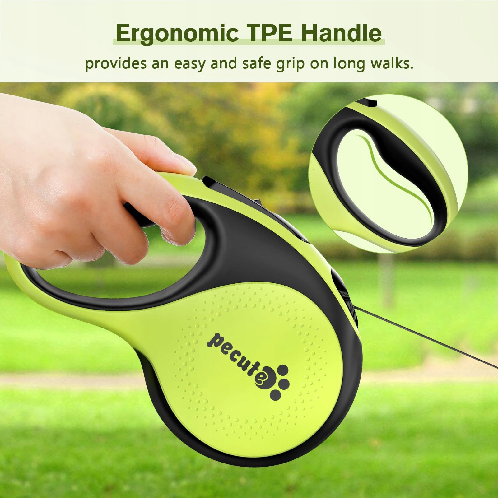 🐾 [Łatwość użytkowania] Uchwyt wykonany jest z materiału TPE, który jest ergonomiczny i wygodny do trzymania, zapobiega zmęczeniu dłoni podczas długich spacerów.