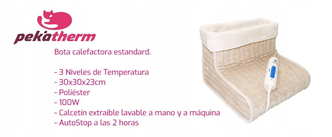 SZCZEGÓŁY TECHNICZNE: Ma moc 100 W, 3-stopniowy regulator i mierzy 27x30x23 cm. Skarpeta jest wykonana z poliestru i można ją prać ręcznie lub w pralce. Po 2 godzinach wyłącza się automatycznie.