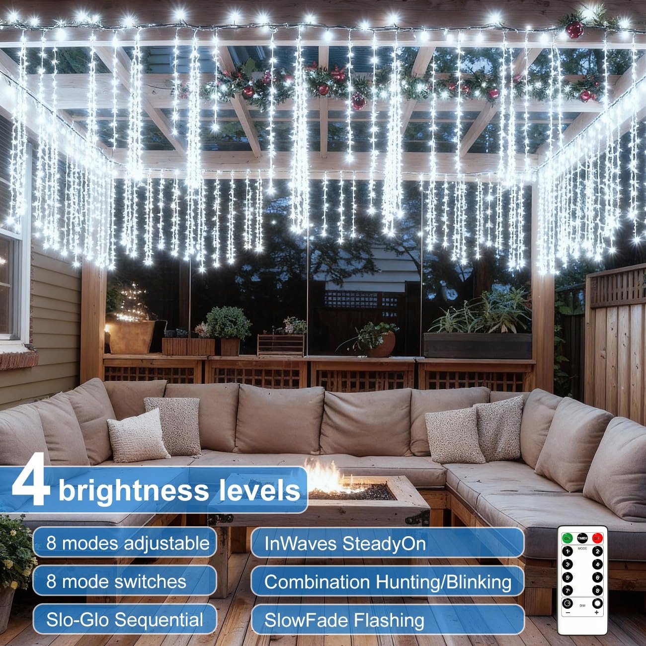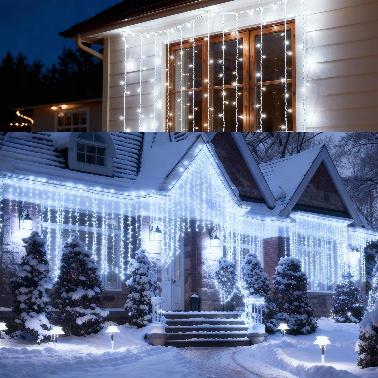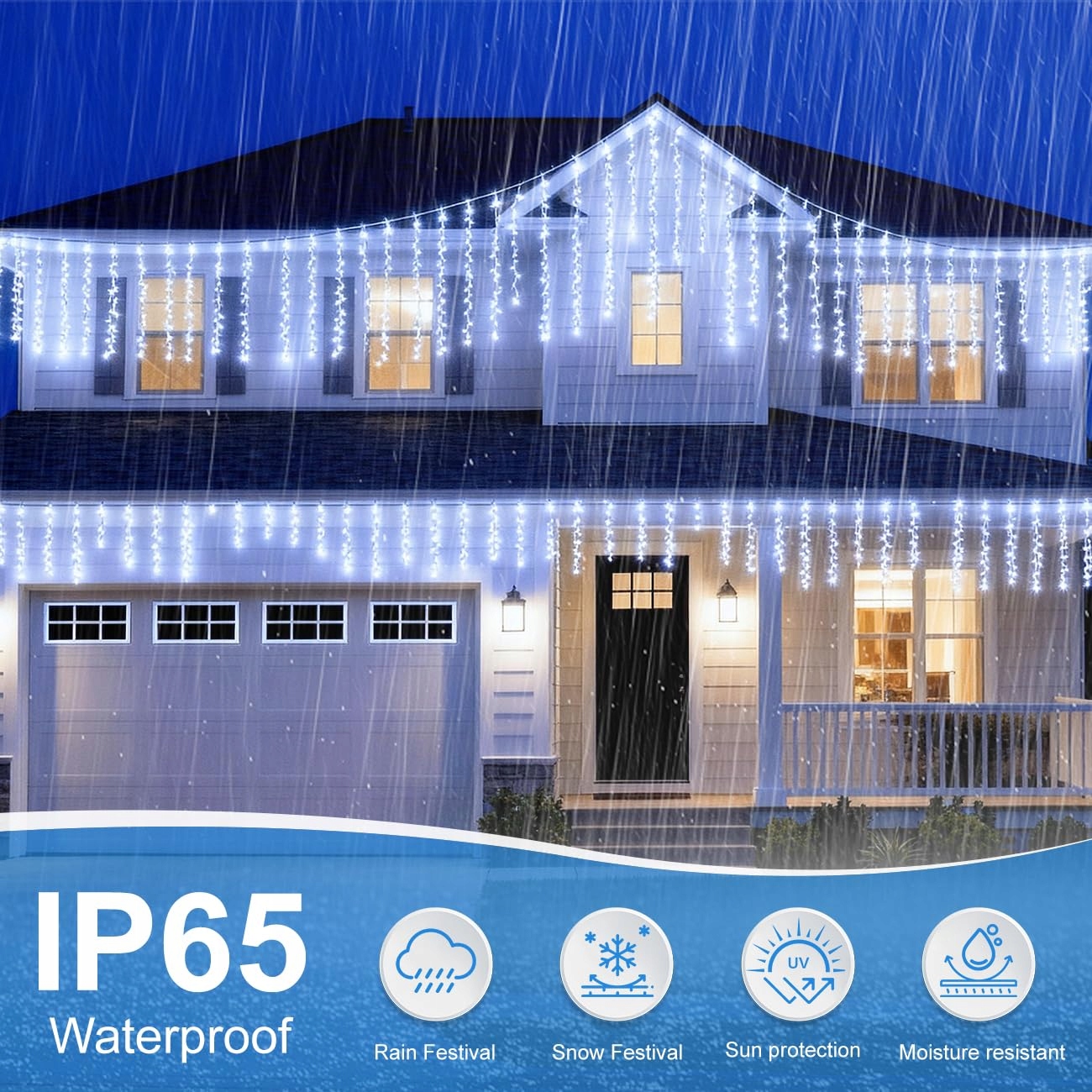 PEMOTech Eisregen łańcuch świetlny na zewnątrz, 15m 632 LED zimna biel oświetlenie świąteczne na zewnątrz, IP65 wodoodporny i pyłoszczelny 8 trybów i timer dekoracja świąteczna na zewnątrz na okna, okapy, balkony, balustrady