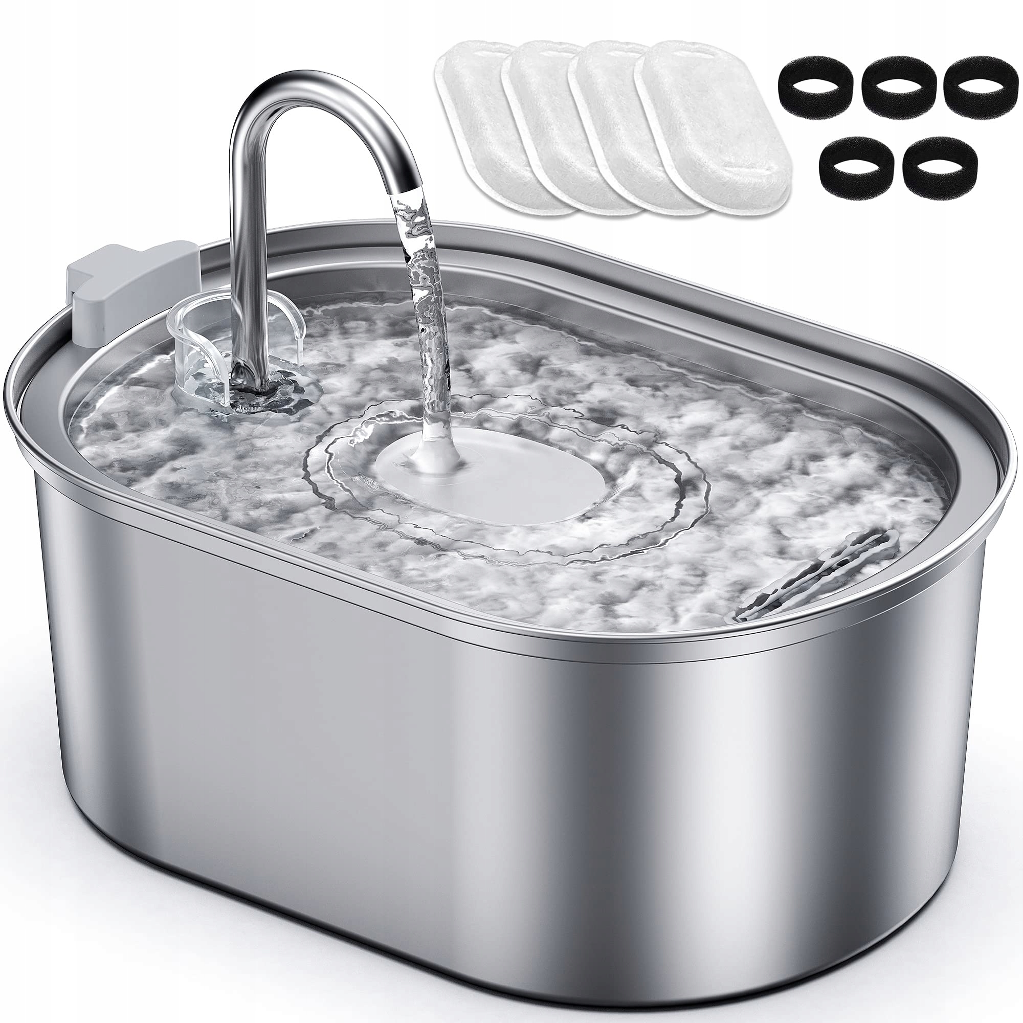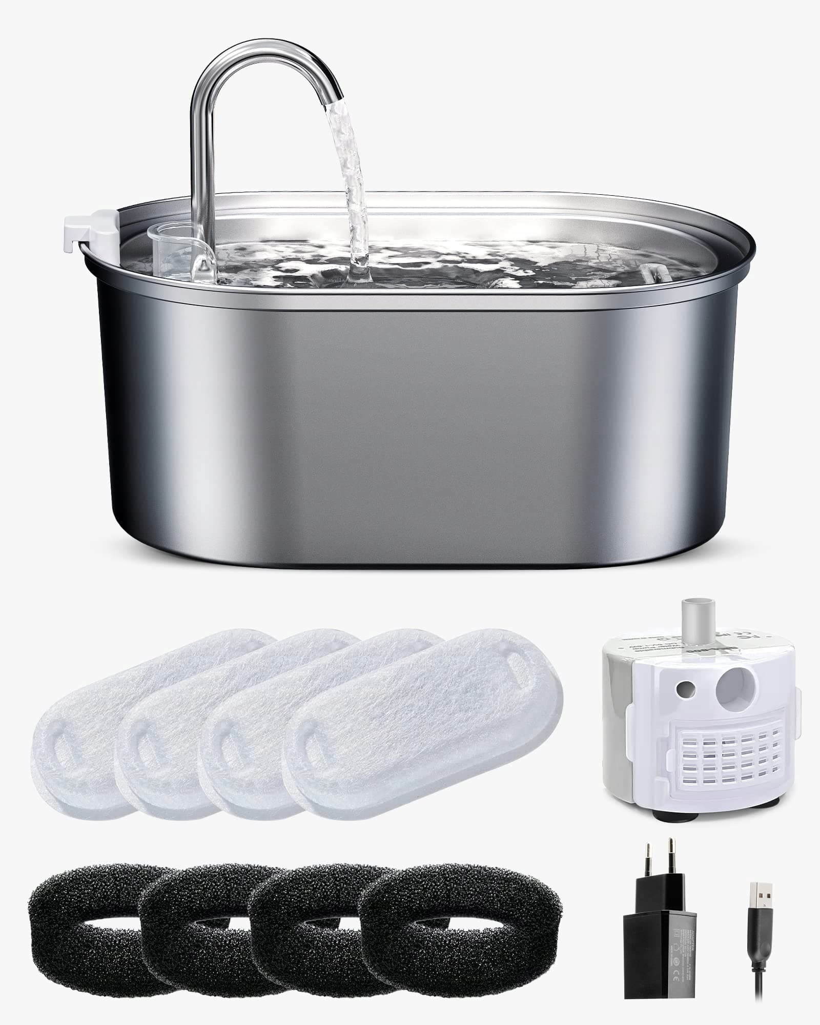 Stalowy dozownik wody jest łatwy do zainstalowania i demontażu, stal nierdzewna 304 jest odporna na zużycie i nadaje się do mycia w zmywarce, może zapobiegać rozwojowi bakterii. Dzięki pojemności 3,2 litra nie musisz często napełniać fontanny wodą