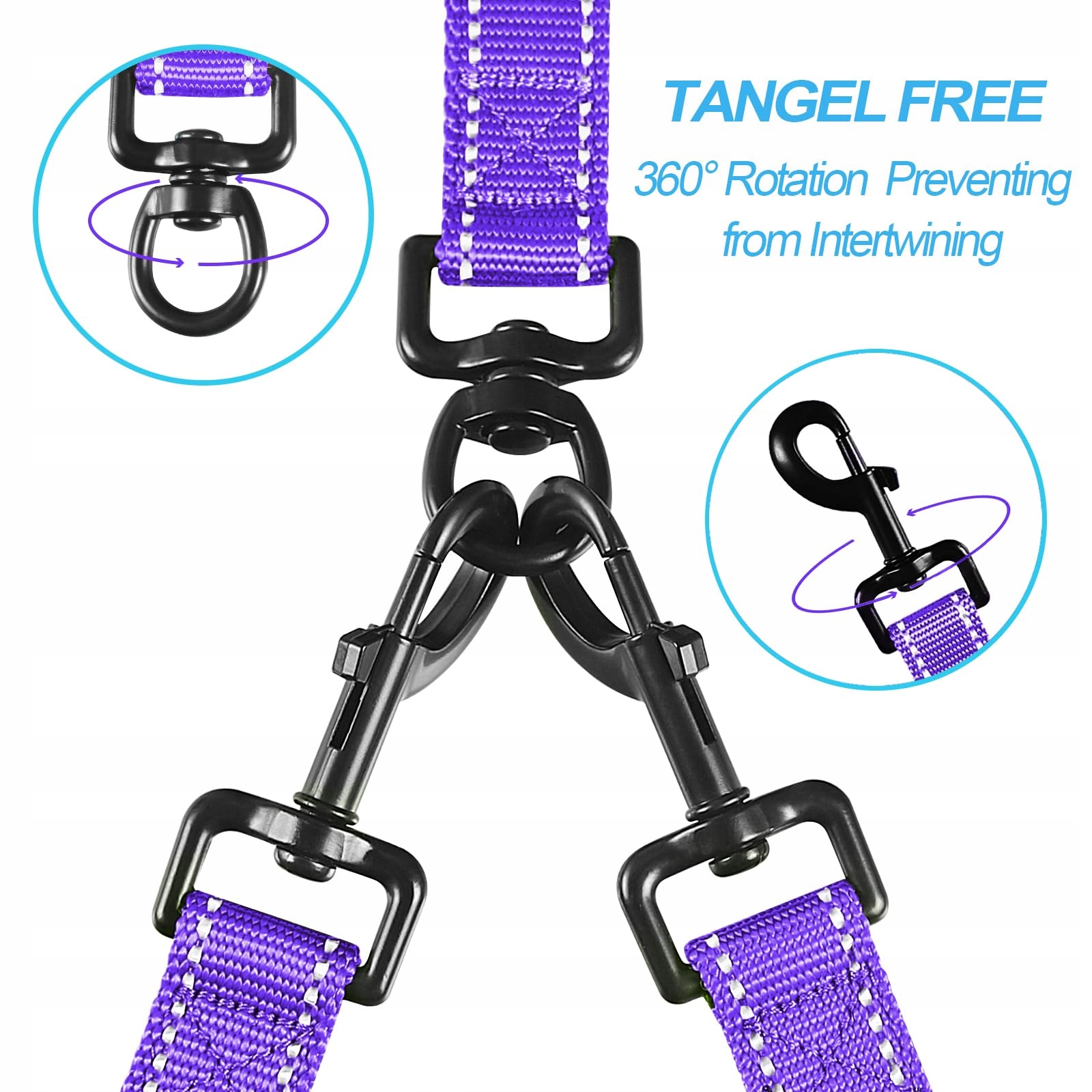 Bez splątania: obrotowe zapięcia 360° zapobiegają splątaniu się psów. Nie musisz się martwić, że podwójna smycz dla dwóch psów się skręci, gdy psy zmieniają stronę
