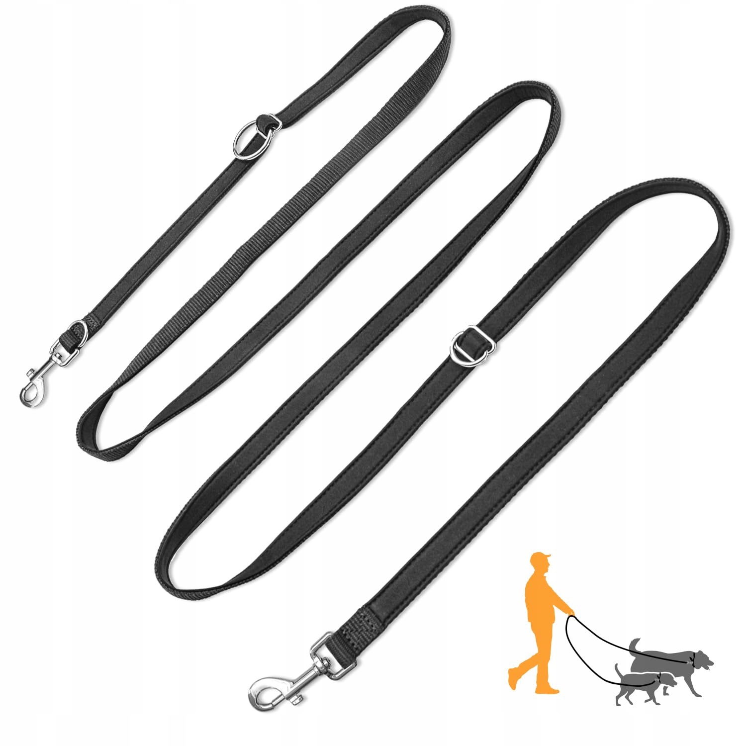 PETCOOZ Smycz Dla Psa 3M Regulowana Z 2 Karabińczykami Nylon Czarna | Premium Supply