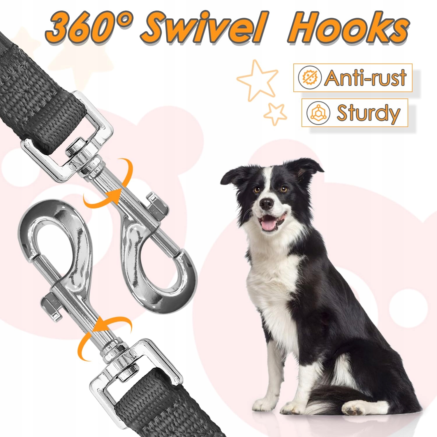 🐾Solidny hak: D-karabińczyk wykonany z wysokiej jakości stopu jest obrotowy o 360°, dzięki czemu smycz nie plącze się i nie skręca. Jednocześnie nie rdzewieje i ma długą żywotność.