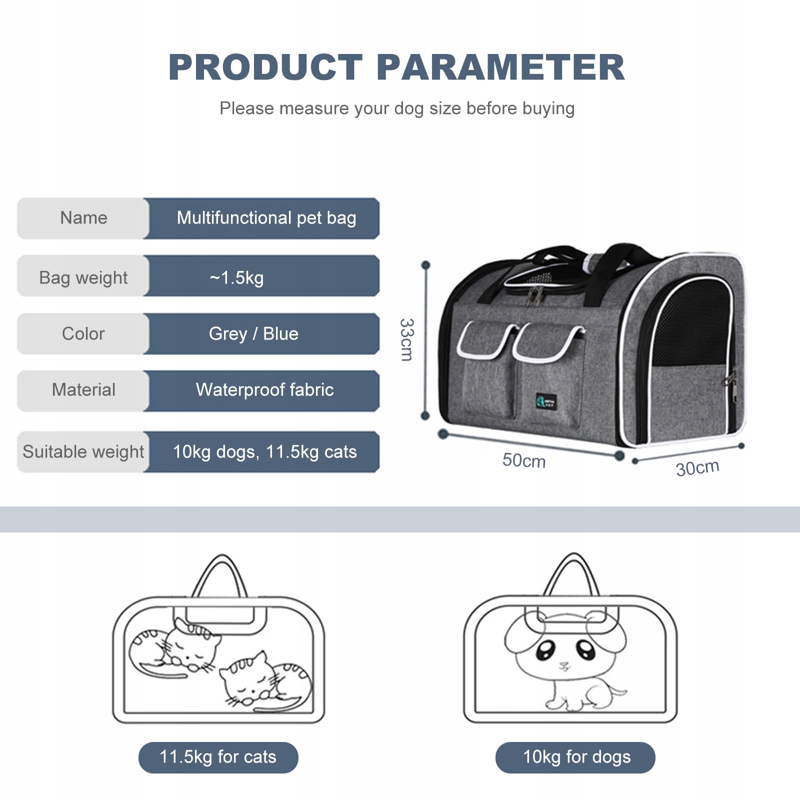 [Wymiary] Rozmiar tego plecaka dla psów wynosi 50 x 30 x 33 cm (dł. x szer. x wys.). Zalecany dla kotów do 11,5 kg/psów do 10 kg. Ten plecak dla kotów wykonany jest z wysokiej jakości tkaniny Oxford, która jest odporna na zadrapania. Ponadto plecak dla zwierząt jest składany, co ułatwia jego przenoszenie.