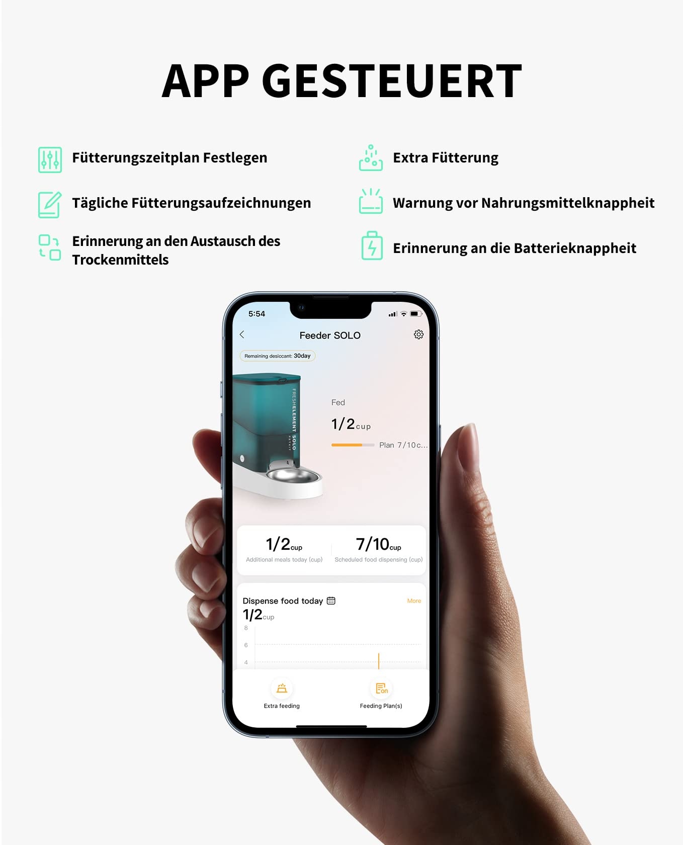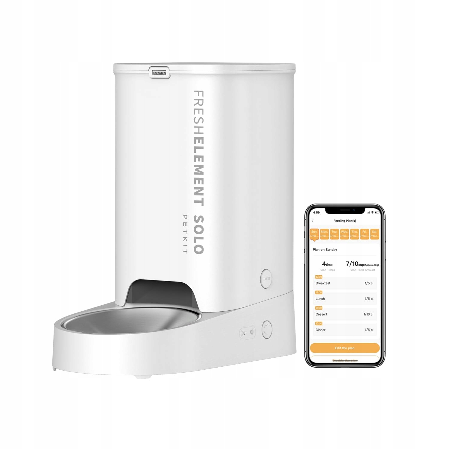 Kontrola za pomocą aplikacji PETKIT: Dzięki automatowi do karmienia PETKIT dla kotów możesz łatwo zorganizować codzienne karmienie swojego zwierzaka. Dzięki funkcji kontroli i monitorowania w aplikacji PETKIT możesz łatwo dostosować plany karmienia i śledzić dane dotyczące karmienia. Wystarczy połączyć się z siecią Wi-Fi (2.4GHz), aby zaplanować do 10 posiłków dziennie z maksymalnie 1/2 szklanki na posiłek.