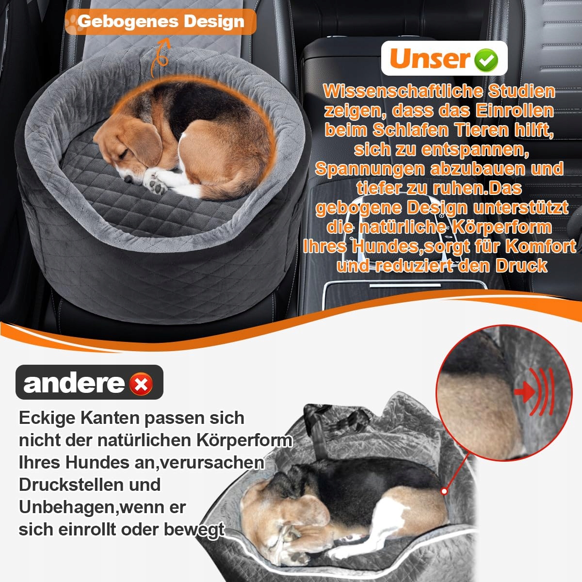 Design dostosowany do psów, zaokrąglony: W przeciwieństwie do kanciastych siedzeń, ten fotelik samochodowy dla psa ma zaokrąglony kształt, który idealnie dopasowuje się do anatomii Twojego psa. Redukuje punkty nacisku, wspiera zdrową postawę i chroni stawy podczas długich podróży. Bez ekstruzji – dla większego bezpieczeństwa i komfortu w podróży