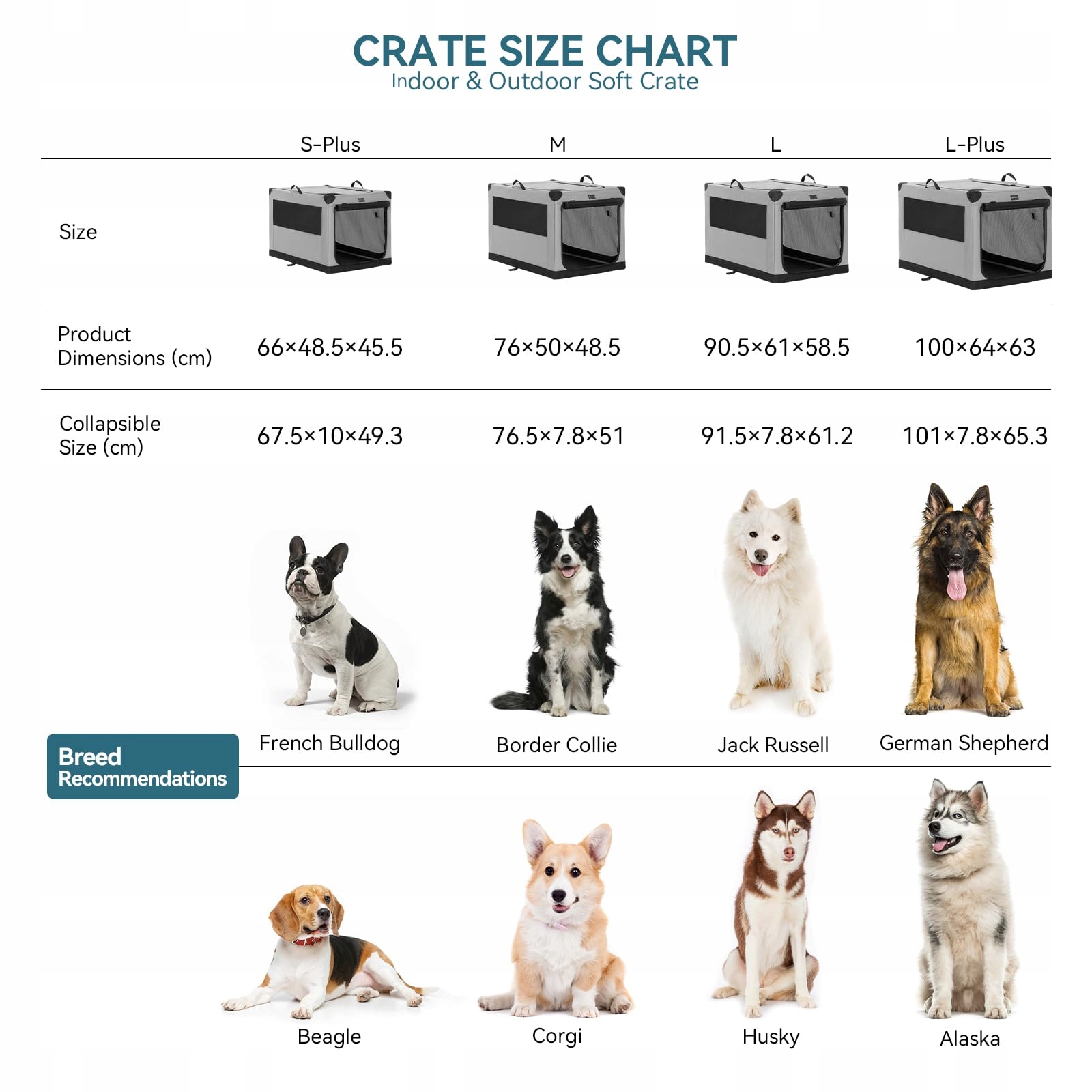 Ta składana skrzynia dla psa jest zaprojektowana jako stabilna całość, bez składanych części w środku, aby zapewnić stabilność strukturalną i zapobiec zapadaniu się lub przyciśnięciu psa. Dzięki temu psy mogą w niej stać, leżeć i opierać się o wewnętrzne stalowe rurki.
