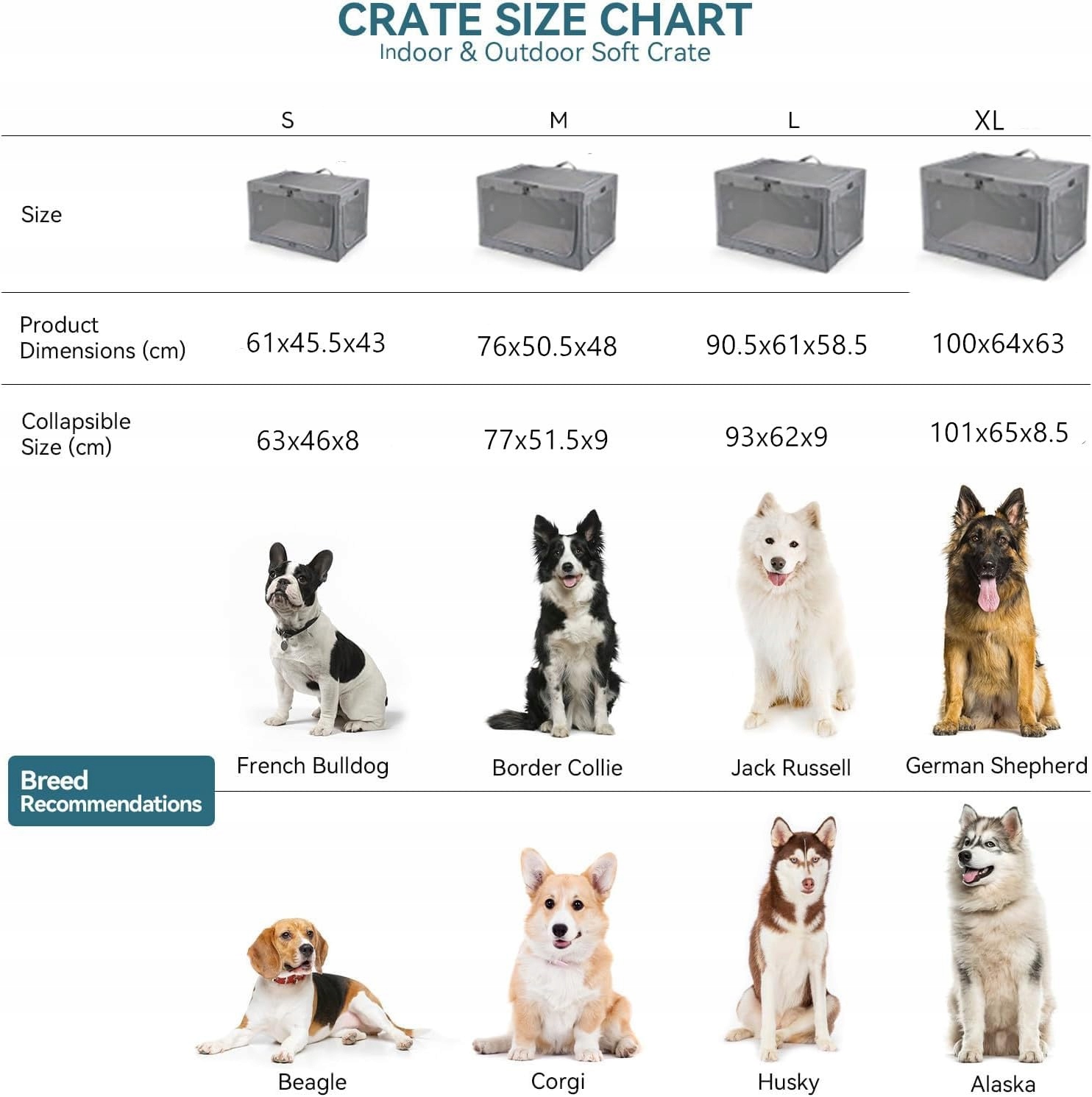 Wskazówka dotycząca wyboru rozmiaru: Składana klatka dla psa ma 4 rozmiary dla małych/średnich dużych psów. Uwaga: proszę sprawdzić szczegóły rozmiaru (pokazane na drugim zdjęciu) i zmierzyć wymiary swojego zwierzaka lub porównać z produktami, które już posiadasz, i wybrać odpowiedni rozmiar. W przypadku szczeniąt zapytaj o wymiary rodziców lub oszacuj wymiary za pomocą profili ras w Internecie, a następnie użyj tych wymiarów, aby nie trzeba było kupować nowej klatki za kilka miesięcy.