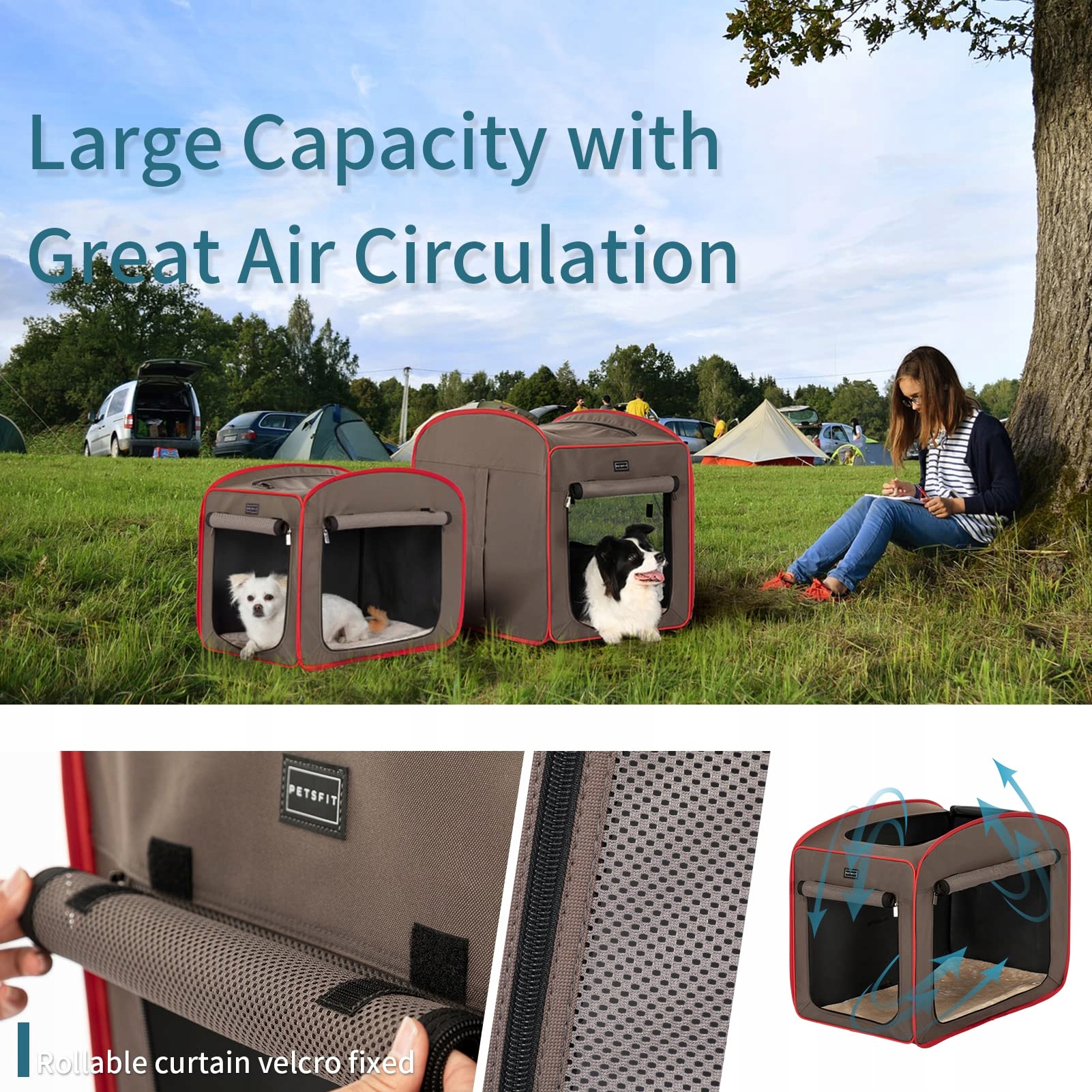 Przenośna w podróży: Transporter Petsfit dla psa jest składany i przenośny, co czyni go wygodniejszym i lżejszym niż większość składanych klatek dla psów na rynku. Nadaje się również do użycia w bagażniku samochodu, co zmniejsza obciążenie podczas podróży. Idealna do codziennego użytku, w domkach letniskowych, podczas podróży i na kempingu.