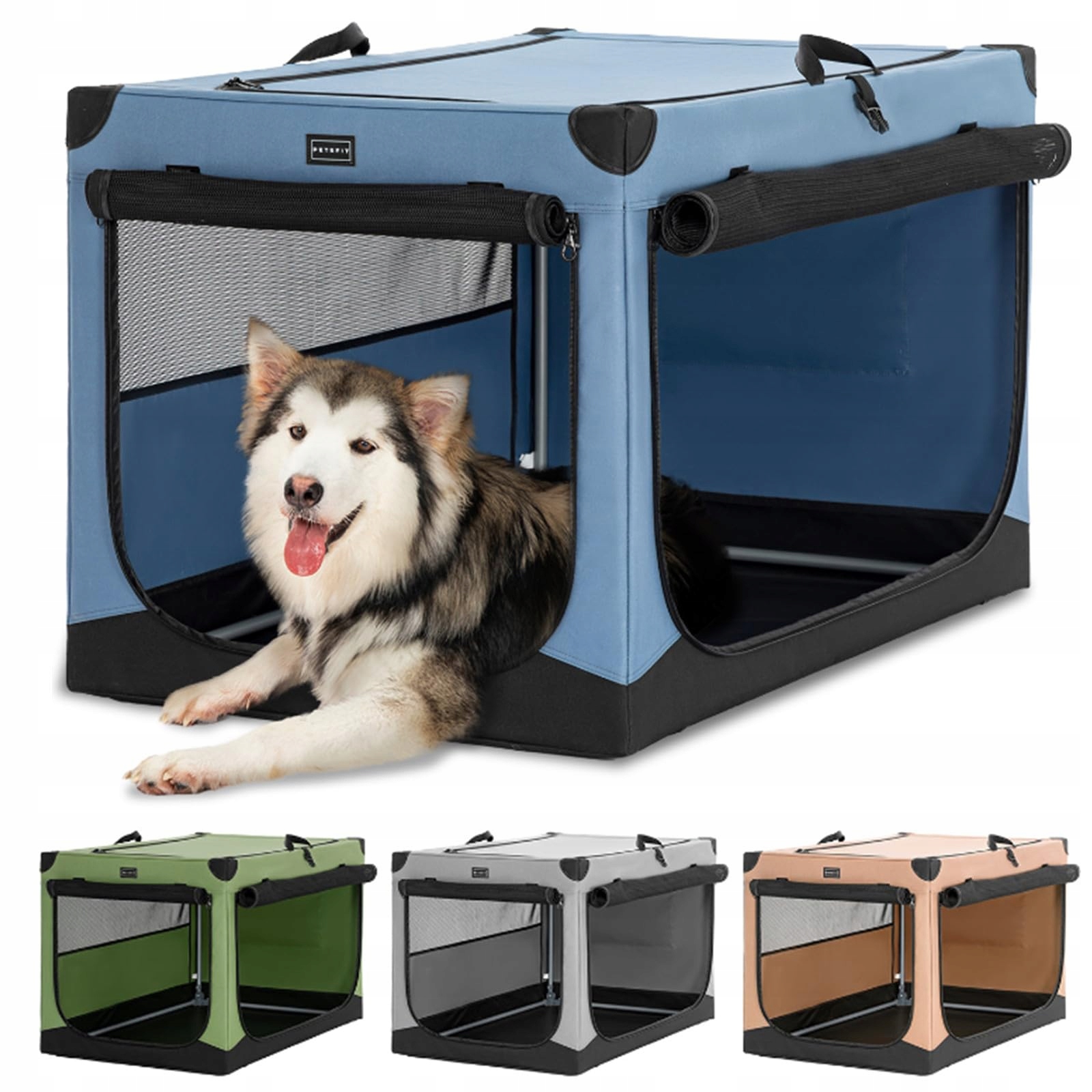 Petsfit Transportbox, Regulowana Pokrywa z Tkaniny ze Spiralną Rurką Żelazną, Składana Transportbox dla Psa do Samochodu z 3-drzwiowym Projektem, Łatwa do Przenoszenia, Łatwa do Przechowywania, XL, Niebieska