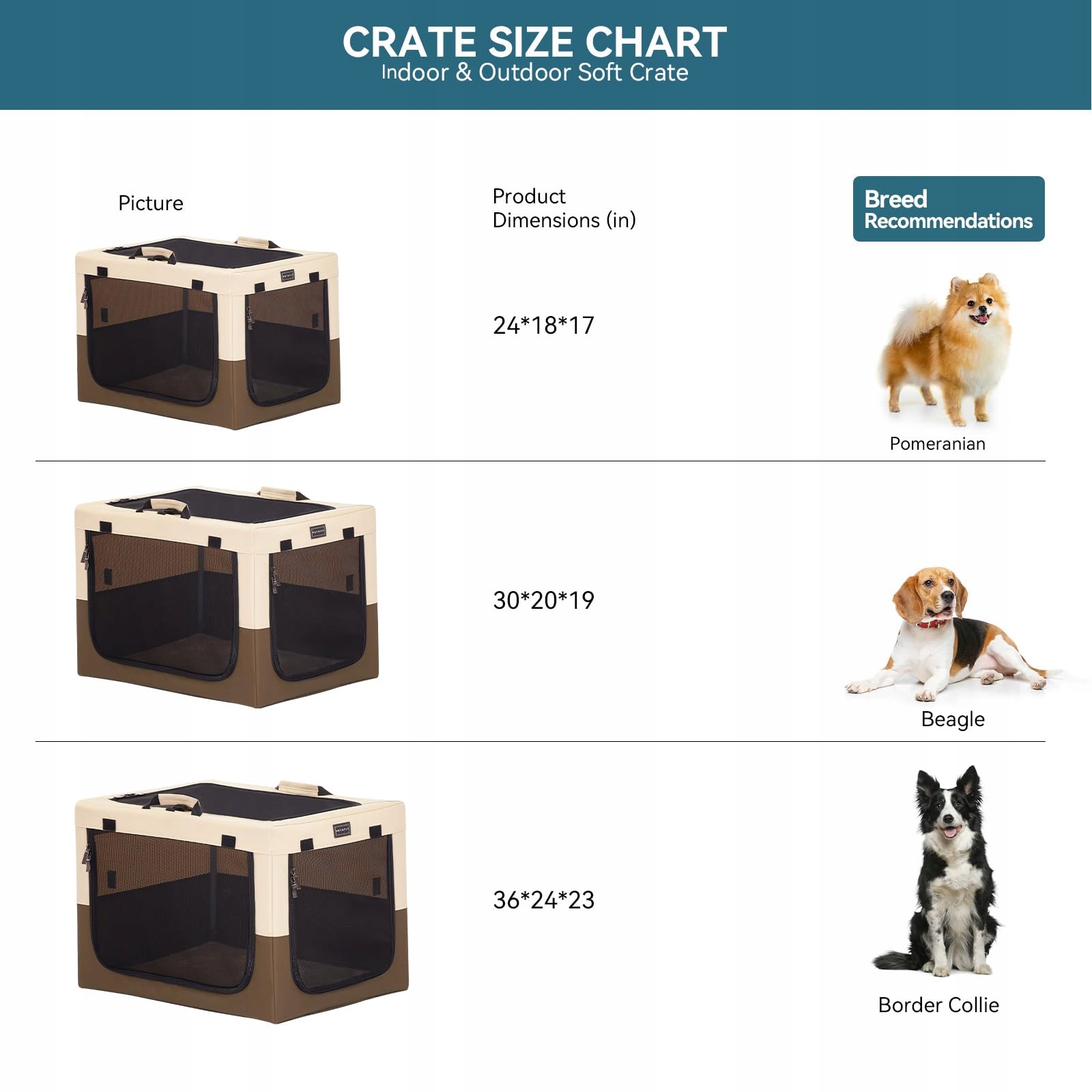Wskazówka dotycząca wyboru rozmiaru: Skrzynia dla psa ma 3 wymiary dla małych/średnich dużych psów. Uwaga: proszę sprawdzić szczegóły rozmiaru (pokazane na drugim zdjęciu) i zmierzyć wymiary swojego zwierzaka lub porównać z produktami, które już posiadasz, aby wybrać odpowiedni rozmiar. W przypadku szczeniąt zapytaj o wymiary rodziców lub oszacuj wymiary za pomocą profili ras w Internecie, a następnie użyj tych wymiarów, aby nie trzeba było kupować nowej skrzyni za kilka miesięcy.