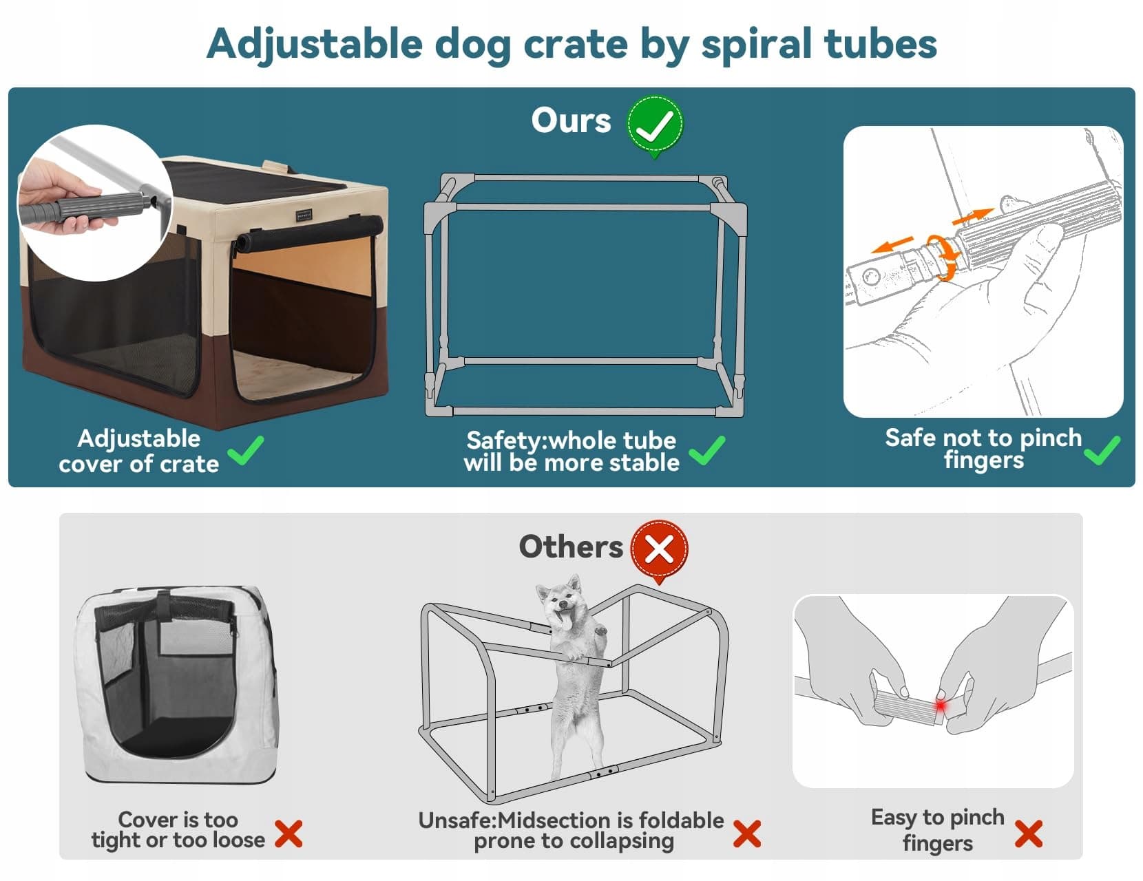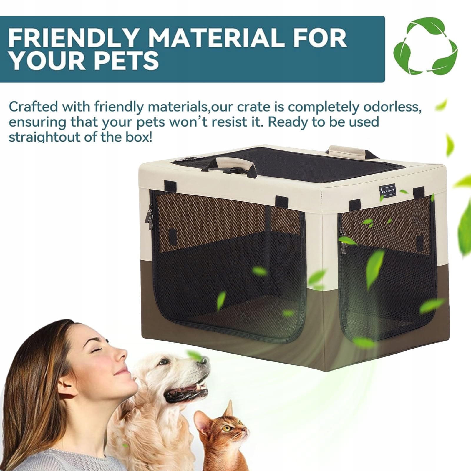 Świetne Miejsce do Spania: Skrzynia dla psa Petsfit jest składana i przenośna, będzie bardziej przytulna i lżejsza niż metalowa klatka. Znacznie zmniejszy obciążenie podczas podróży. 3 strony z siatką są całkowicie wystarczające dla cyrkulacji powietrza. Dywanik jest ładny i miękki. Twój pies używa tej skrzyni do spania. Będzie się w niej dobrze czuł. Skrzynia dla psa jest idealna do codziennego użytku, w domku letniskowym, podczas jazdy samochodem i na kempingu.