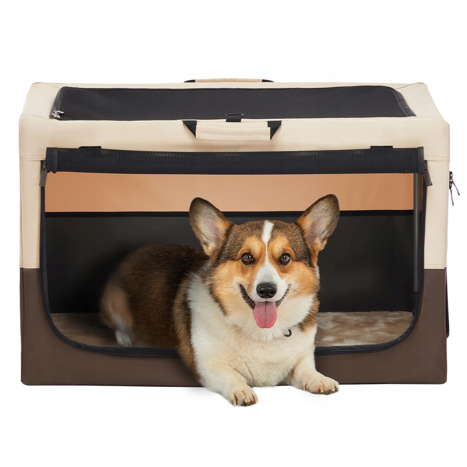 Petsfit Składana Skrzynka Transportowa dla Psów, Przenośna Skrzynka Transportowa dla Kotów, Skrzynka Transportowa do Samochodu z Tkaniny dla Dużych, Średnich i Małych Psów z Pluszową Poduszką (Kawa, M: 76cm x 50,5cm x 48cm)