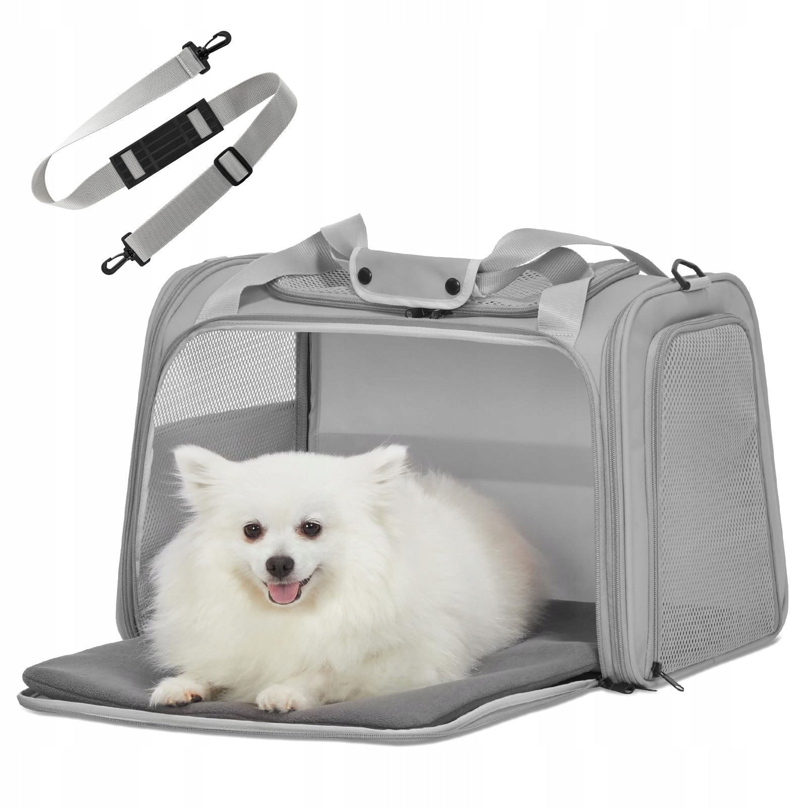 KOMFORTOWY I PRZESTRONNY: Składana torba dla małych psów otwiera się z 4 stron. Nasz transporter dla kotów zapewnia odpowiednią cyrkulację powietrza! Miękka mata może być rozszerzona do użytku.