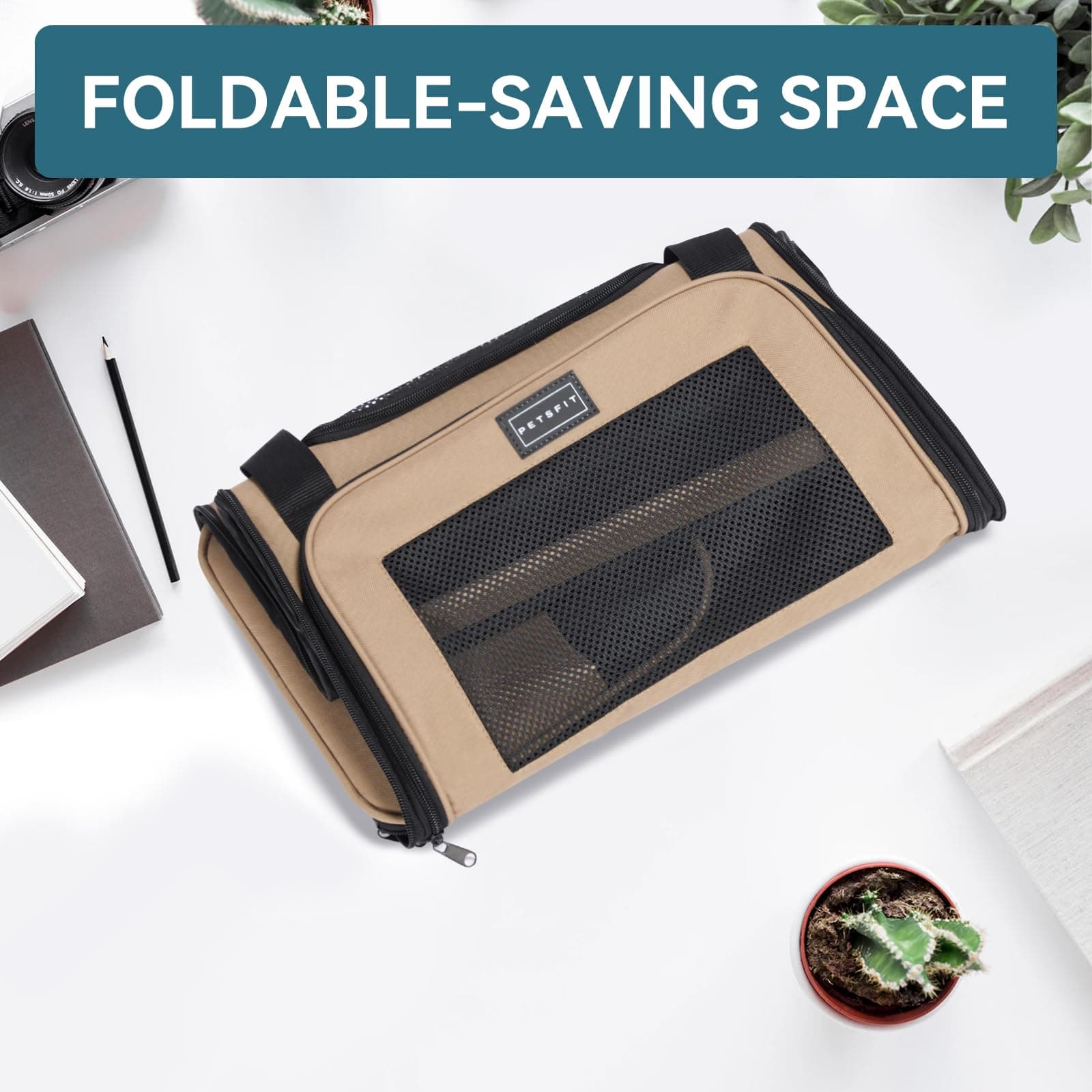 Petsfit Transporter dla kotów i małych psów, lekka torba dla psów, torba transportowa dla małych psów i kotów, torba transportowa dla psów z pasem bezpieczeństwa i rozszerzaną matą, L/Khaki