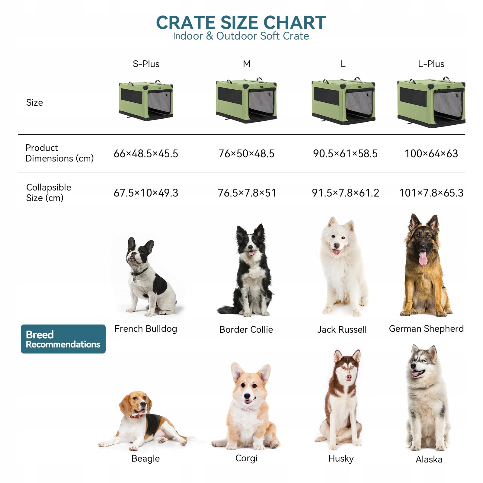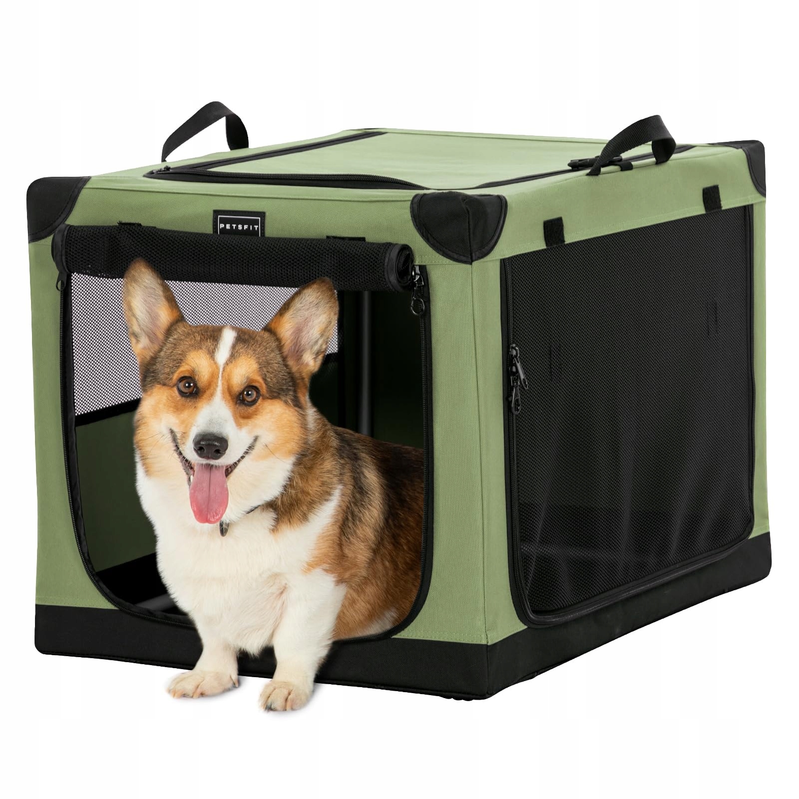 Petsfit Transporter dla Psów Średniej Wielkości, Regulowany Pokrowiec z Tkaniny z Rurką Spiralną, Składana Transporter dla Psów z 3 Drzwiami, Łatwy do Przenoszenia, Łatwy do Przechowywania, M, Zielony