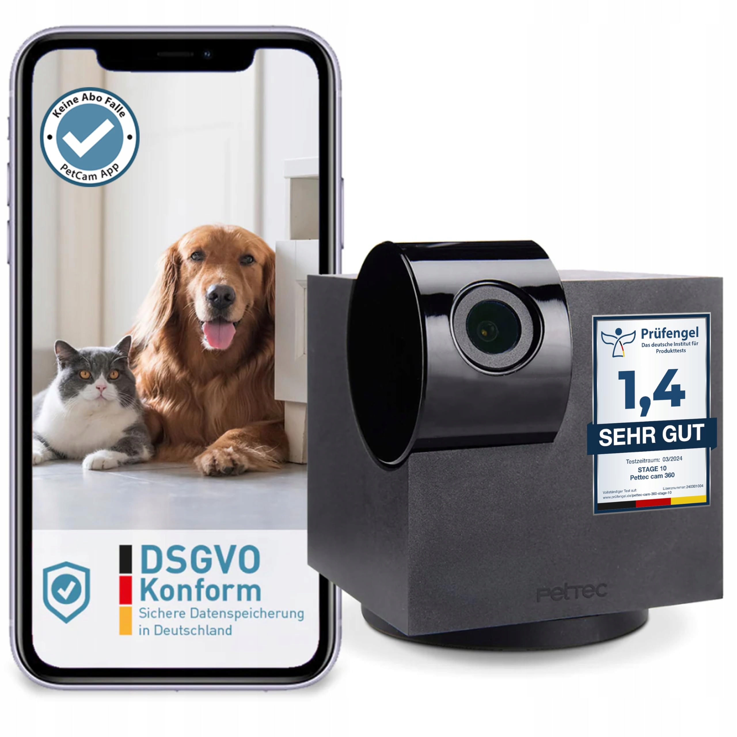 🐾NA ŻYWO W HD: PetTec Cam 360° pomaga Ci mieć zawsze oko na Twojego pupila - wystarczy jedno spojrzenie na darmową i wolną od reklam aplikację (IOS & Android). Obrotowa o 360° kamera dla zwierząt domowych działa w oparciu o WiFi i funkcjonuje w sieci 2,4 GHz.