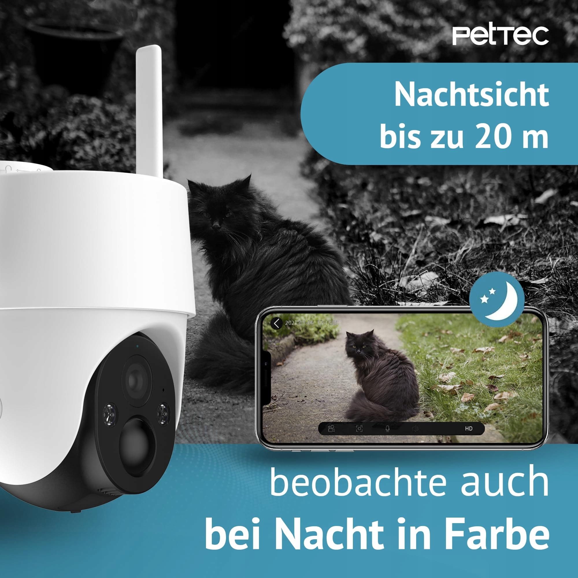 REFLEKTOR I SYRENA: Aktywowane reflektor i zintegrowana syrena do odstraszania – sterowane przez aplikację. Chroń swoją własność efektywnie dzięki głośnemu sygnałowi alarmowemu i jasnemu światłu, które odstrasza intruzów