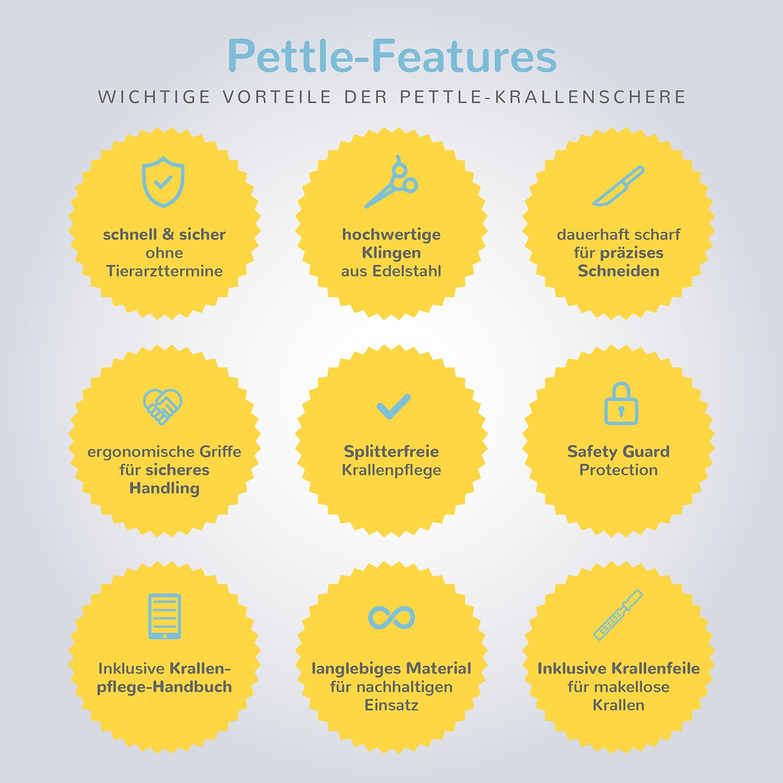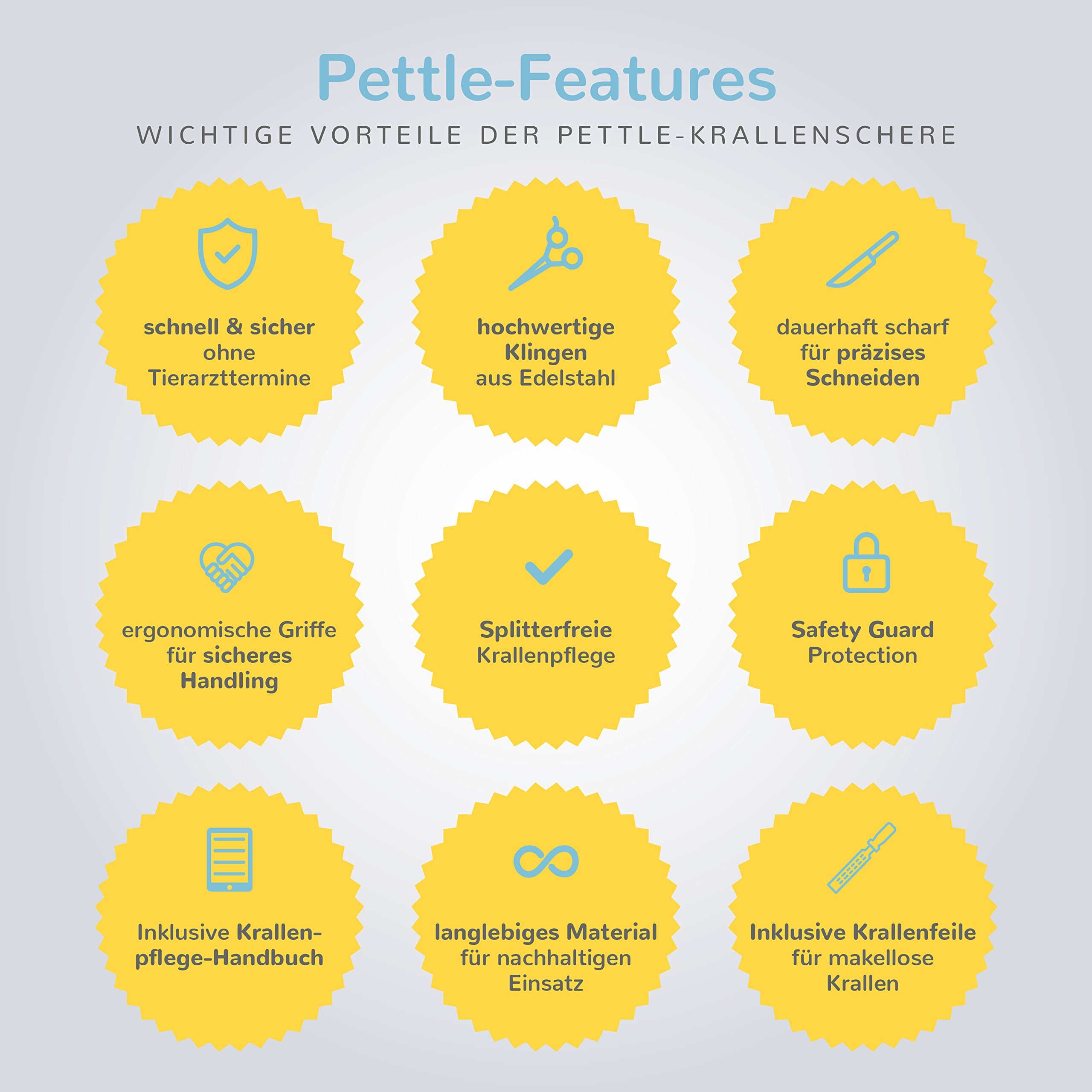 Pielęgnacja pazurów bez rozprysków dla Twojego ukochanego – pielęgnacja pazurów Twojego czworonoga jest teraz prosta i bezpieczna: dzięki ostrym i precyzyjnym ostrzom ze stali nierdzewnej, ochronie SafetyGuard i ergonomicznym uchwytom nigdy więcej nie odpryskują pazurów