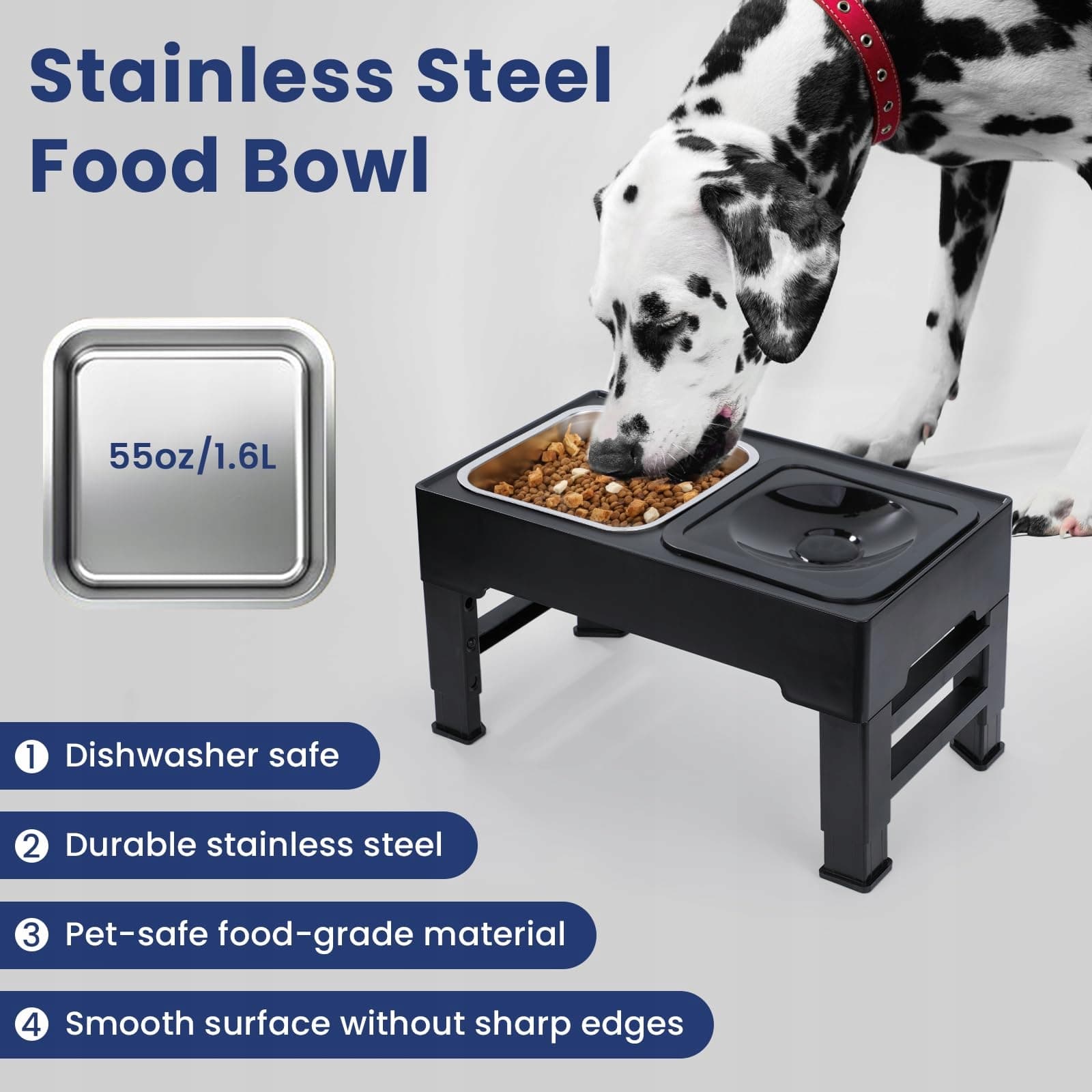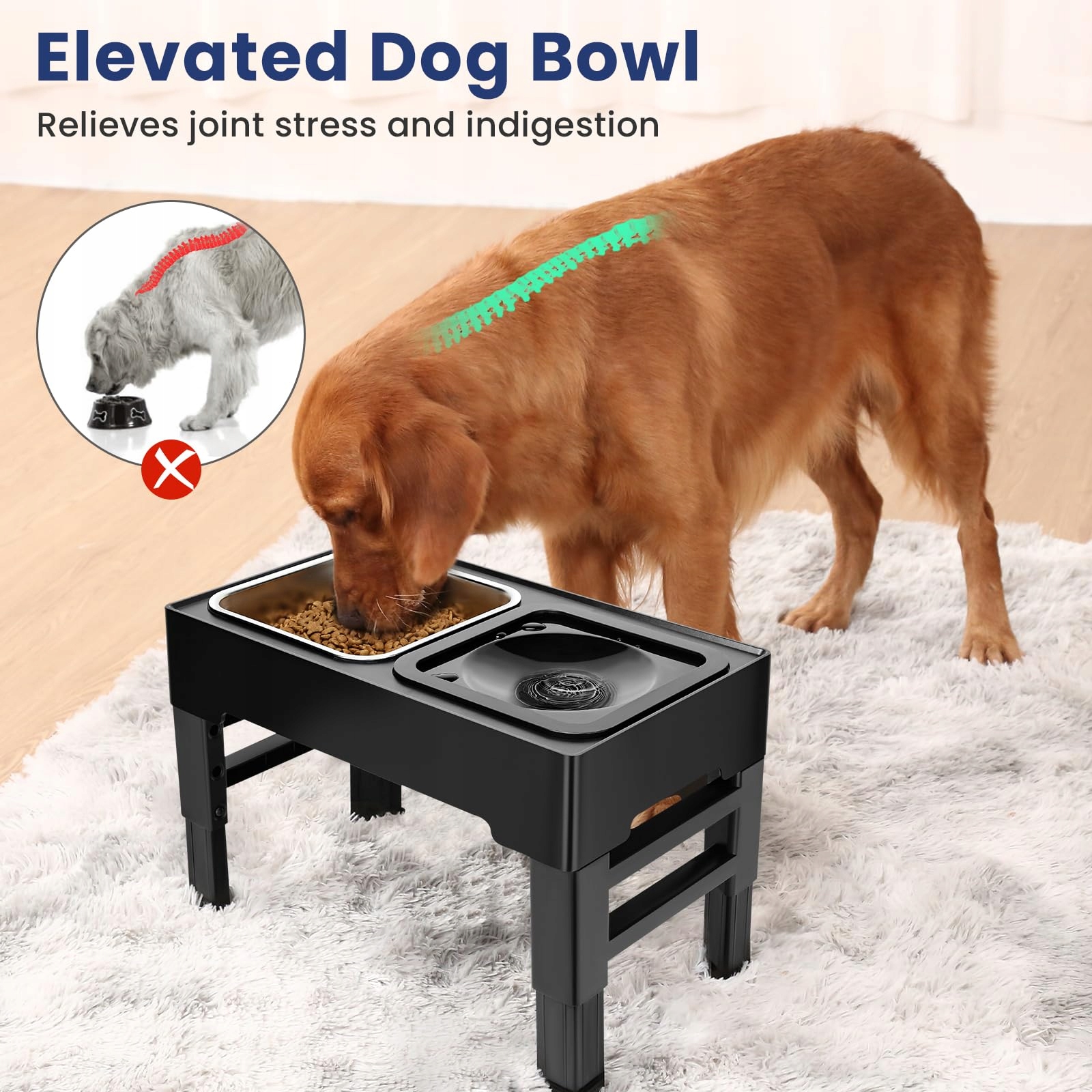 [ERGONOMICZNA]Podwyższona miska na karmę oferuje naukowo uzasadnioną strategię żywieniową, która zmniejsza nacisk na szyję Twojego psa i wspomaga trawienie. To poprawia ogólne samopoczucie Twojego czworonoga i przyczynia się do zdrowszego stylu życia.