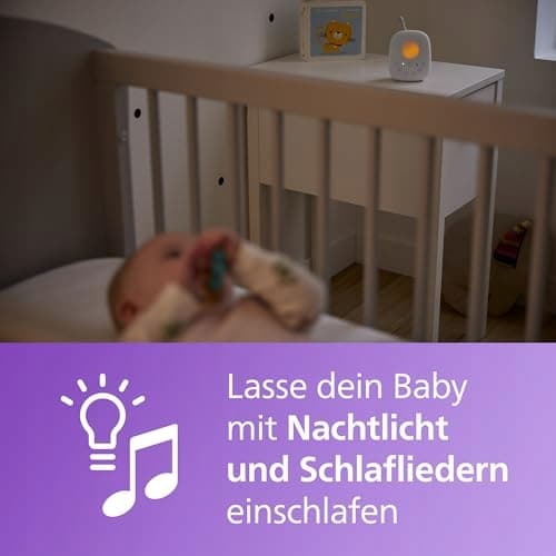 Philips Avent Audio Babyphone DECT-Technologia, tryb Eco, funkcja interkomu, kołysanki i piosenki na dobranoc, czujnik temperatury, maksymalny zasięg, biały (model SCD713/26)
