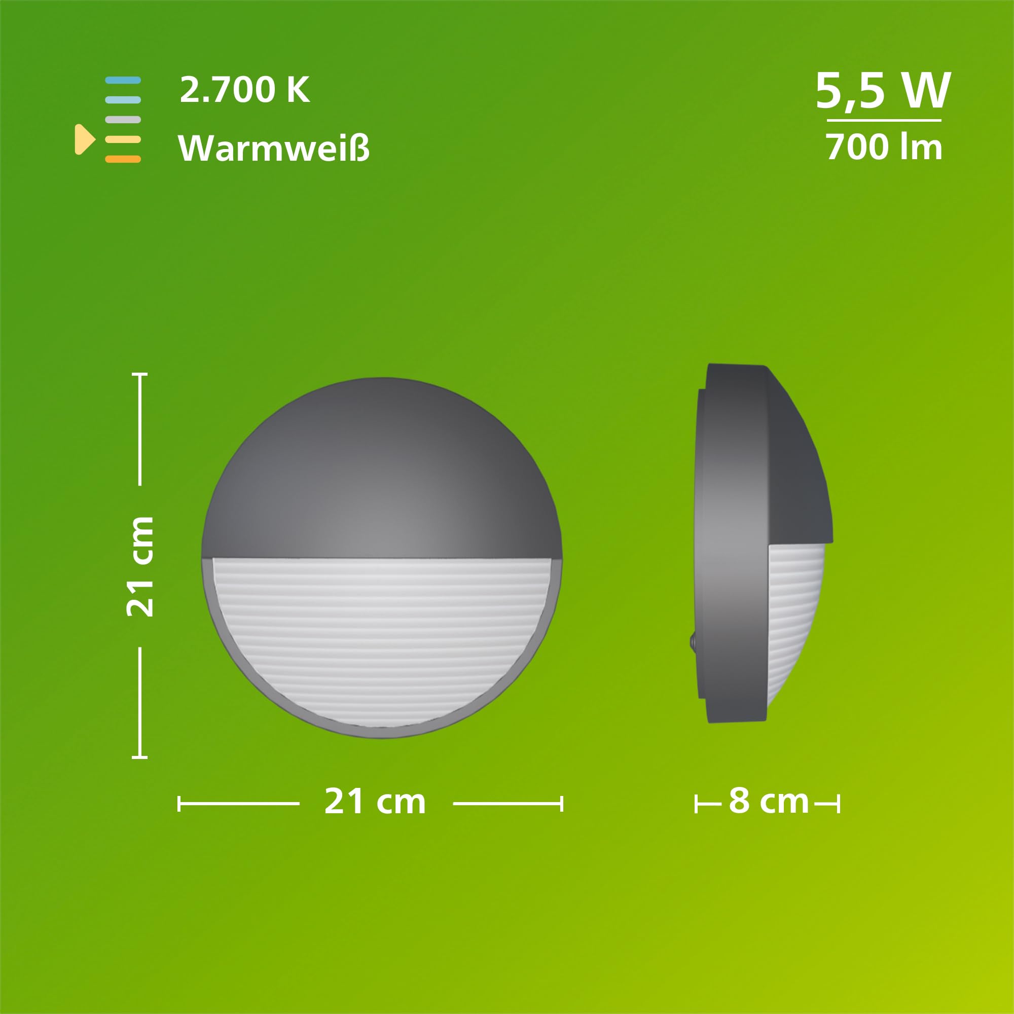 Philips Capricorn LED zewnętrzna lampa ścienna (6 W), wodoodporna lampa zewnętrzna o okrągłym designie, energooszczędne oświetlenie LED z ciepłym białym światłem, antracyt, szary