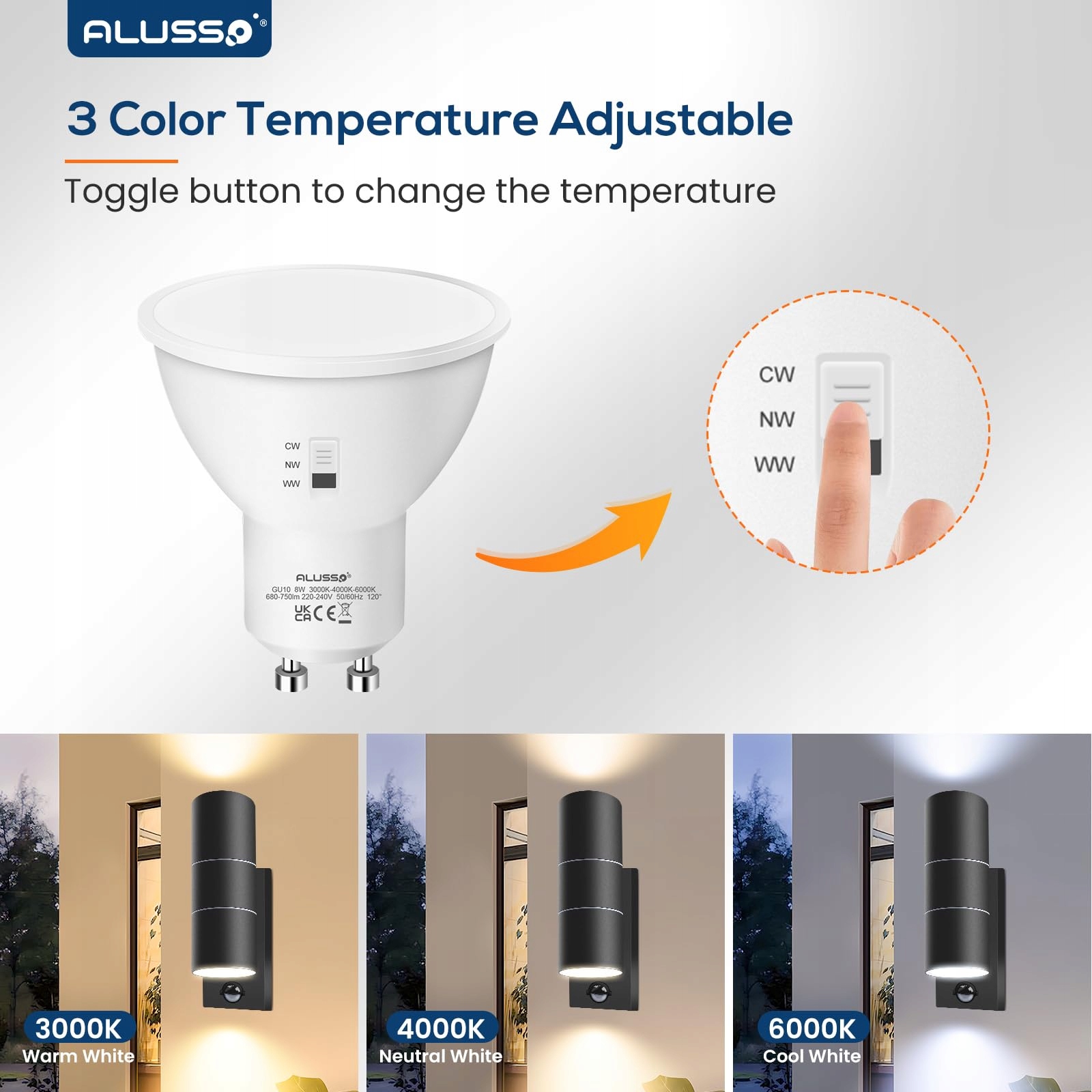 🌈【3 temperatury barwowe】 Nasza lampa ścienna jest wyposażona w żarówkę GU10 o mocy 8 W, która ma średnią żywotność 30 000 godzin. Światło góra-dół można ustawić na żądaną temperaturę barwową za pomocą przycisku na żarówce. Do wyboru są 3000K światło ciepłe, 4000K światło normalne i 6000K światło zimne.