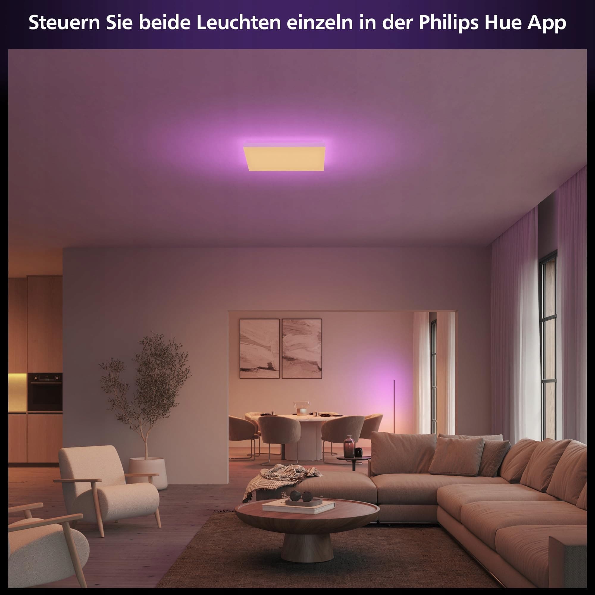 Główne i tło światło - oba w kolorze: Panel sufitowy Hue Datura posiada rozproszone główne światło i subtelne światło tła, które oba oferują pełną gamę kolorowego światła