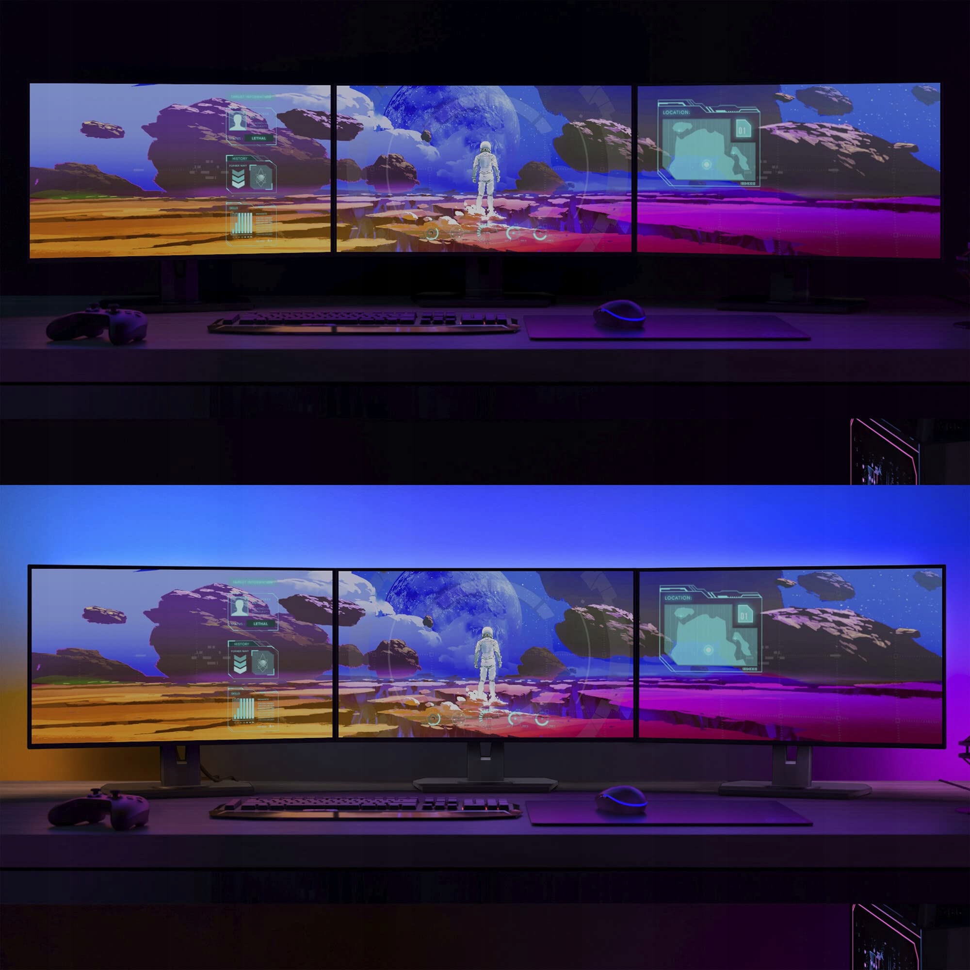 Stworzony dla monitorów: Philips Hue Play Gradient Lightstrip dla trzech monitorów został stworzony dla monitorów 24" do 27". Przymocuj pasek świetlny z tyłu monitorów za pomocą dołączonych uchwytów.