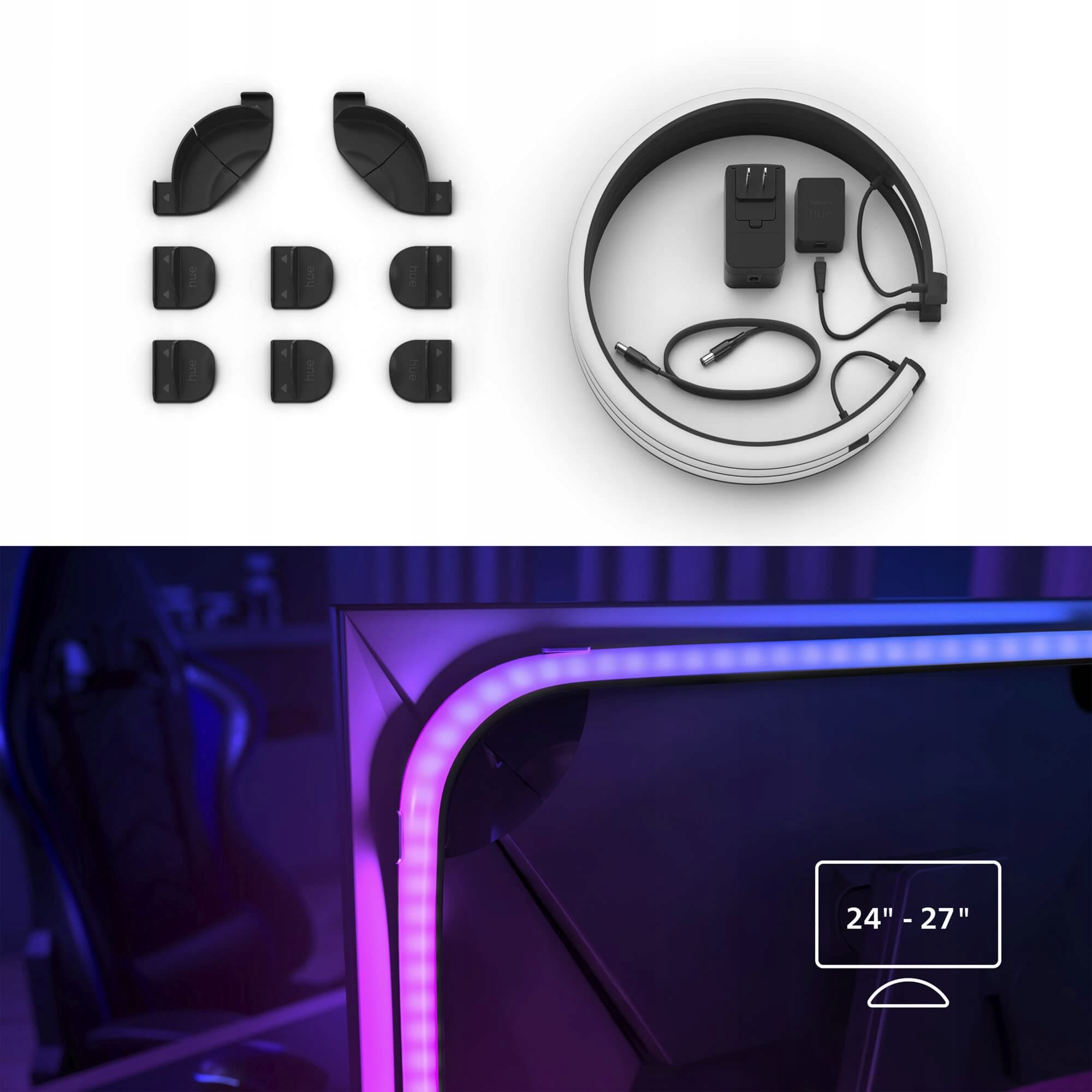 PHILIPS Hue Color & White Ambience Play Gradient, PC Lightstrip dla 3 x 24/27”, ściemnialny, 16 mln kolorów, sterowany za pomocą aplikacji, kompatybilny z Amazon Alexa, Apple HomeKit & Google Assistant